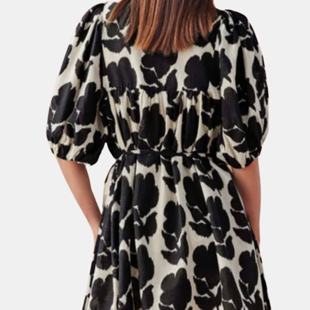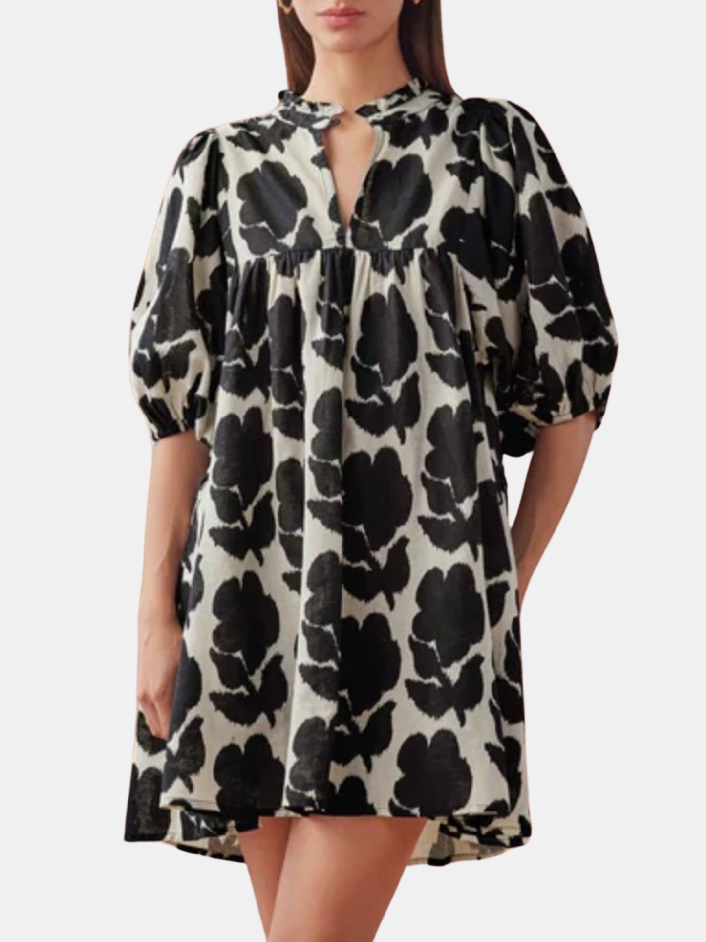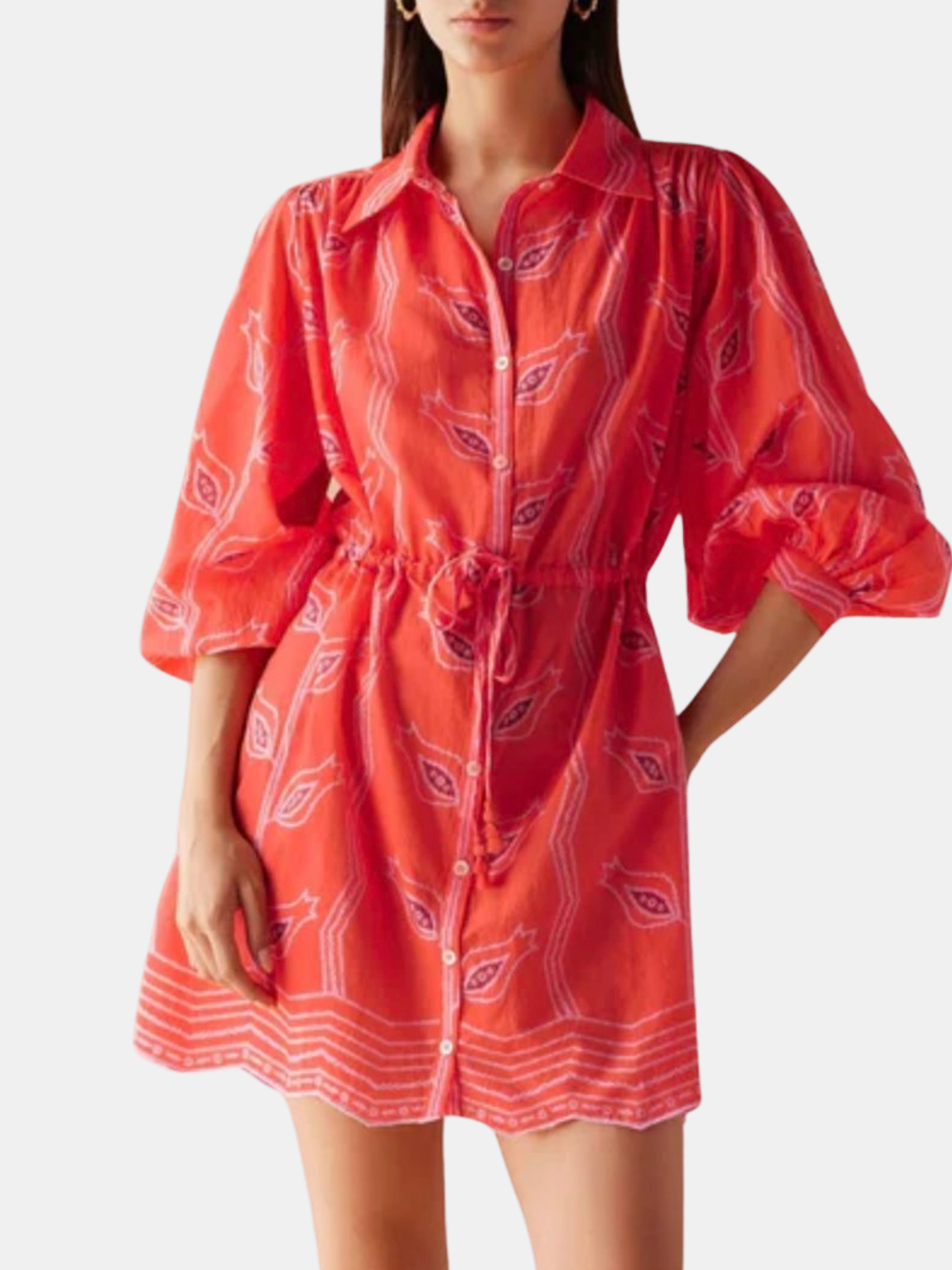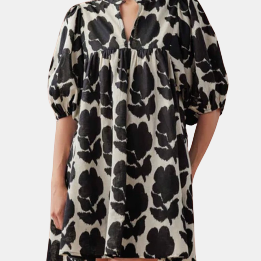 A chic update on a classic shift style, the Twiggy dress is a timeless mini silhouette cut from pale pink satin with a large-scale peony print. A boat neckline flows into long bell sleeves and an adjustable tie waist for a flattering fit. Remove the belt and pair with flats for an effortless daytime look or style with heels for the perfect dinner-ready moment. Shown in Peony Love.