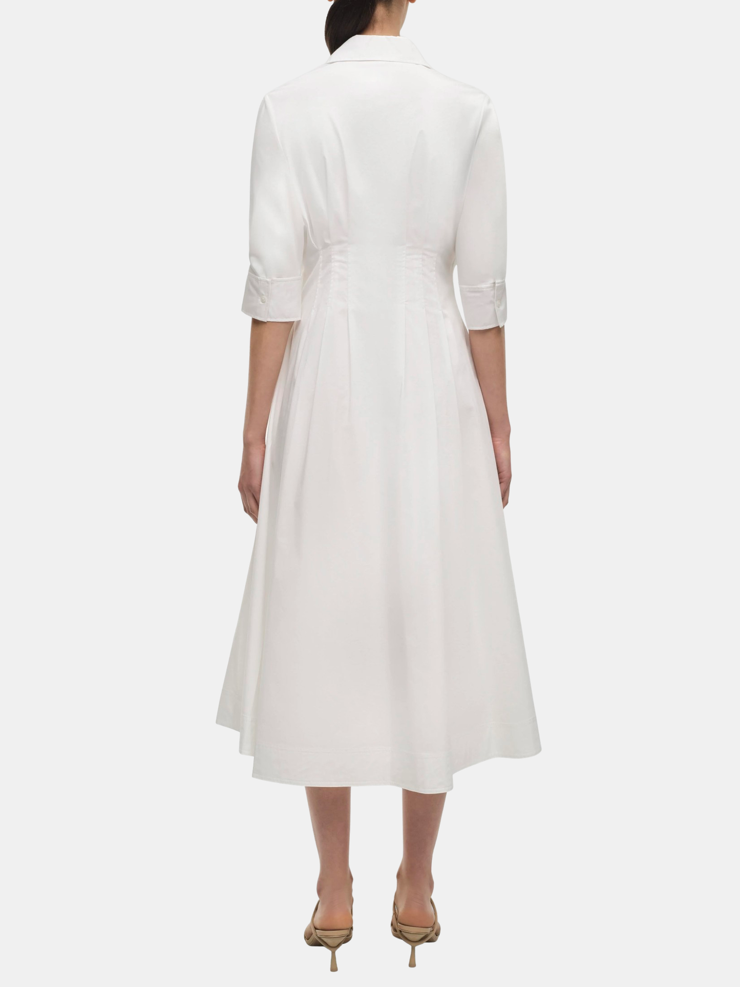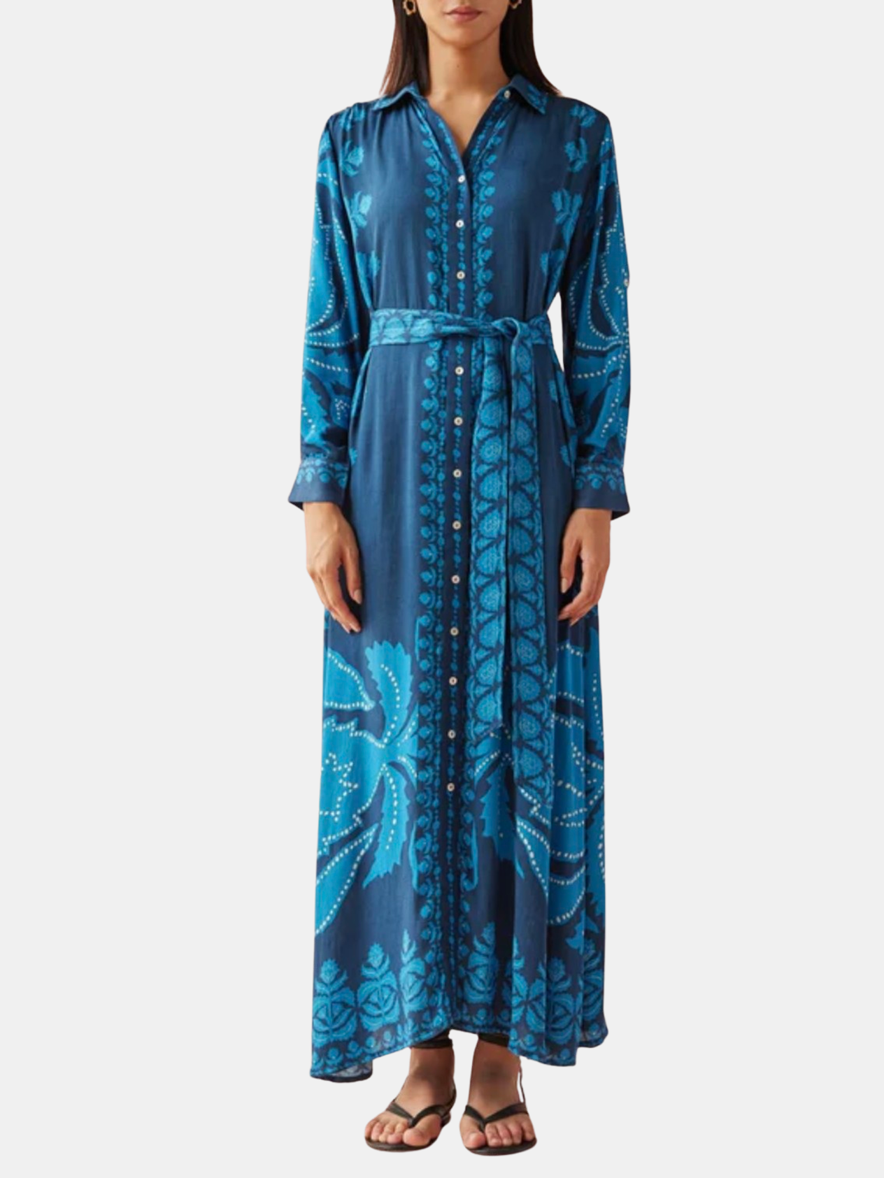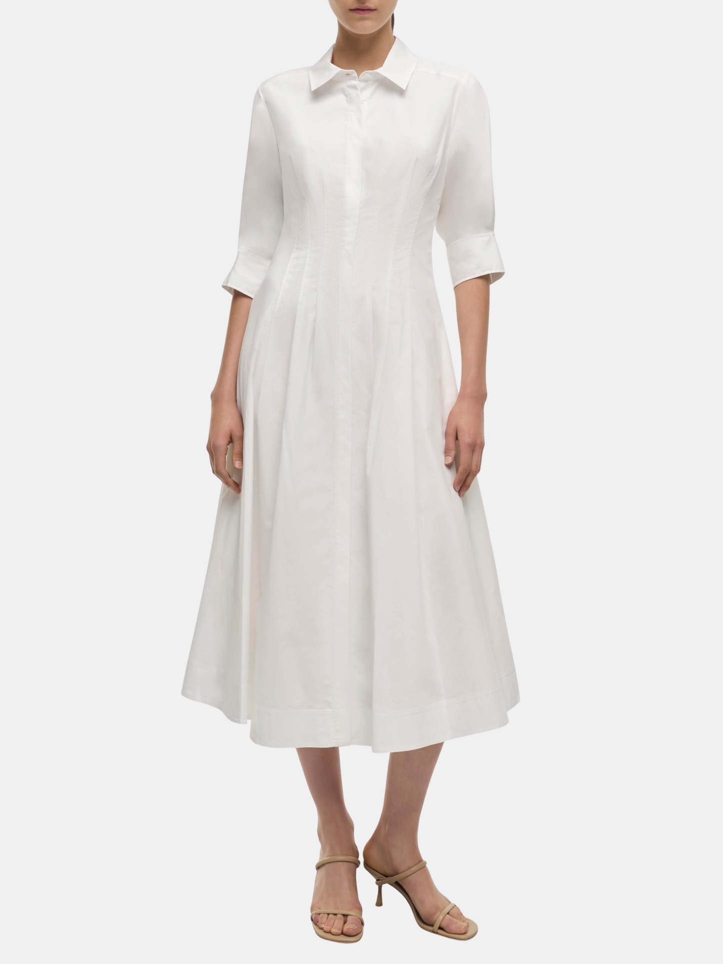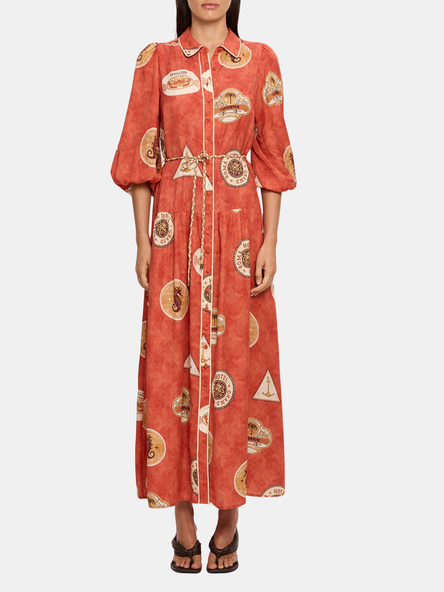 A chic update on a classic shift style, the Twiggy dress is a timeless mini silhouette cut from pale pink satin with a large-scale peony print. A boat neckline flows into long bell sleeves and an adjustable tie waist for a flattering fit. Remove the belt and pair with flats for an effortless daytime look or style with heels for the perfect dinner-ready moment. Shown in Peony Love.