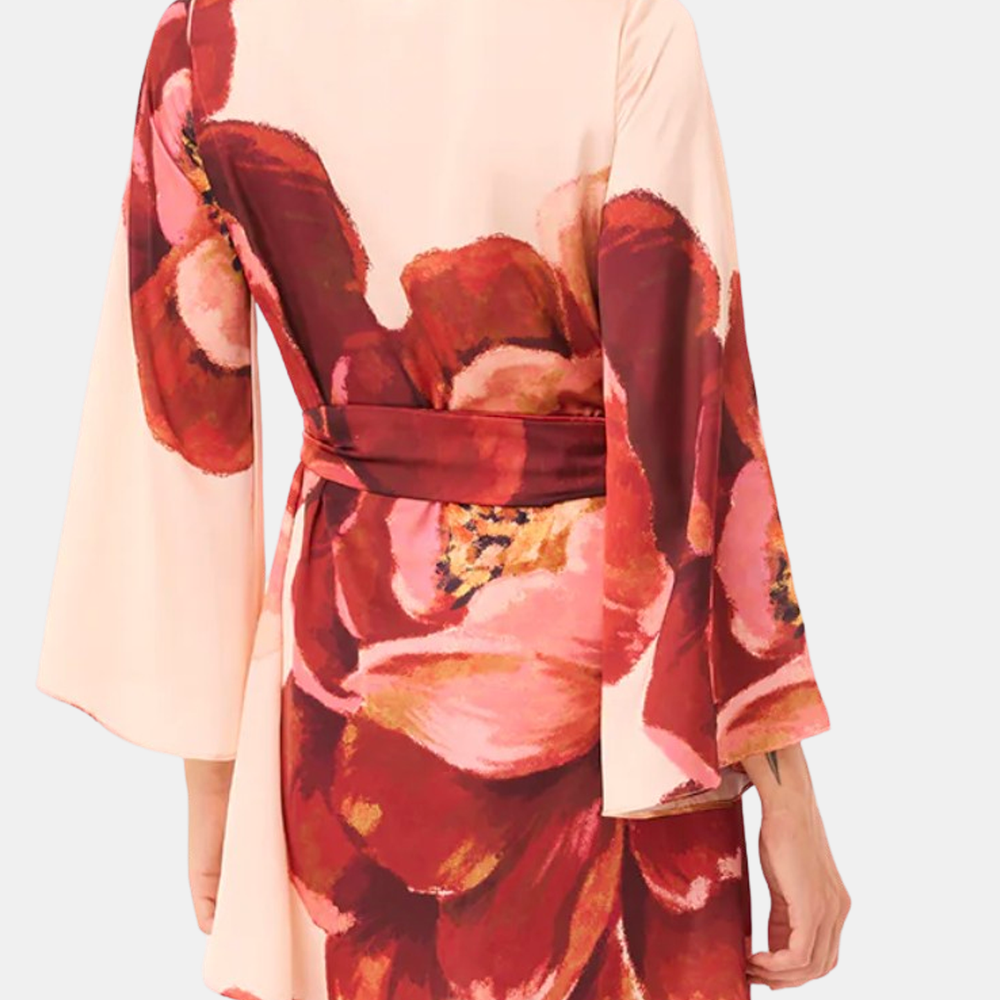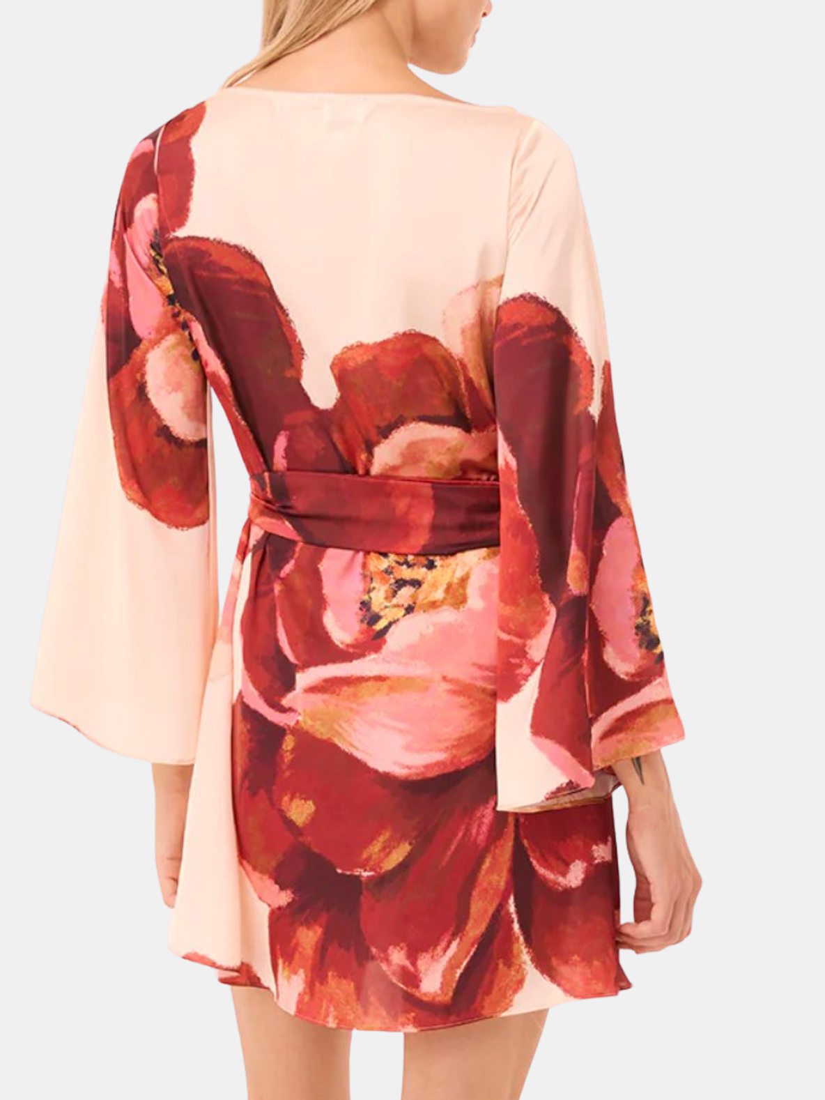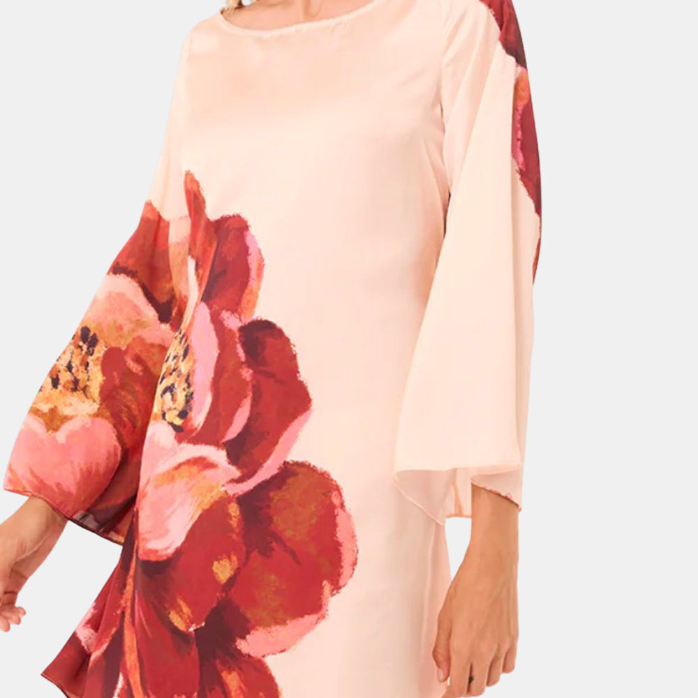 A chic update on a classic shift style, the Twiggy dress is a timeless mini silhouette cut from pale pink satin with a large-scale peony print. A boat neckline flows into long bell sleeves and an adjustable tie waist for a flattering fit. Remove the belt and pair with flats for an effortless daytime look or style with heels for the perfect dinner-ready moment. Shown in Peony Love.