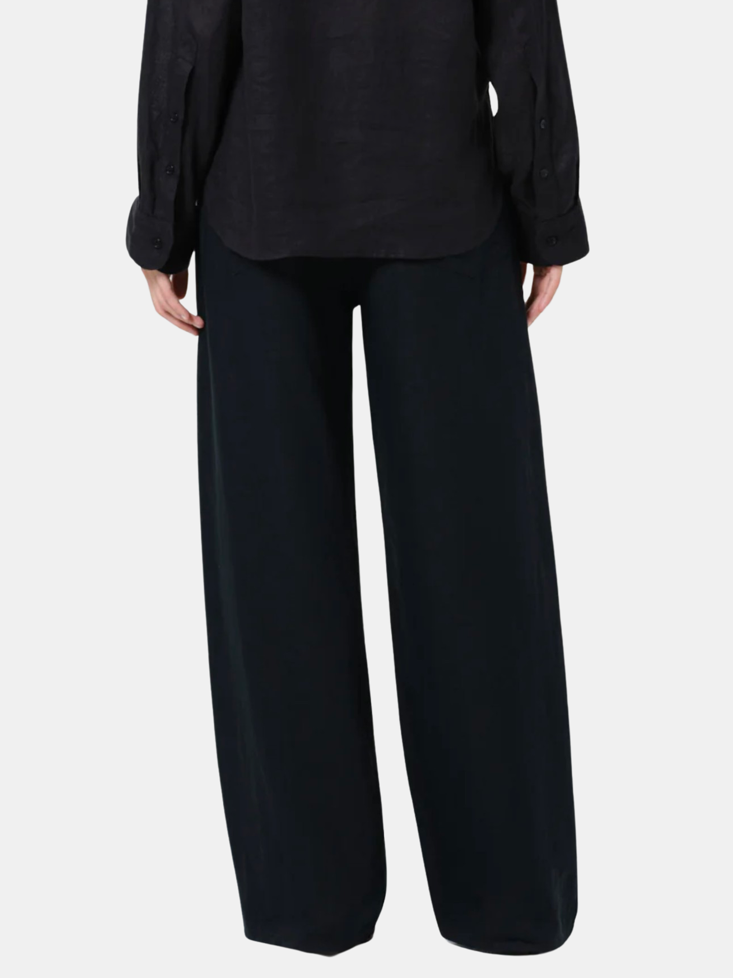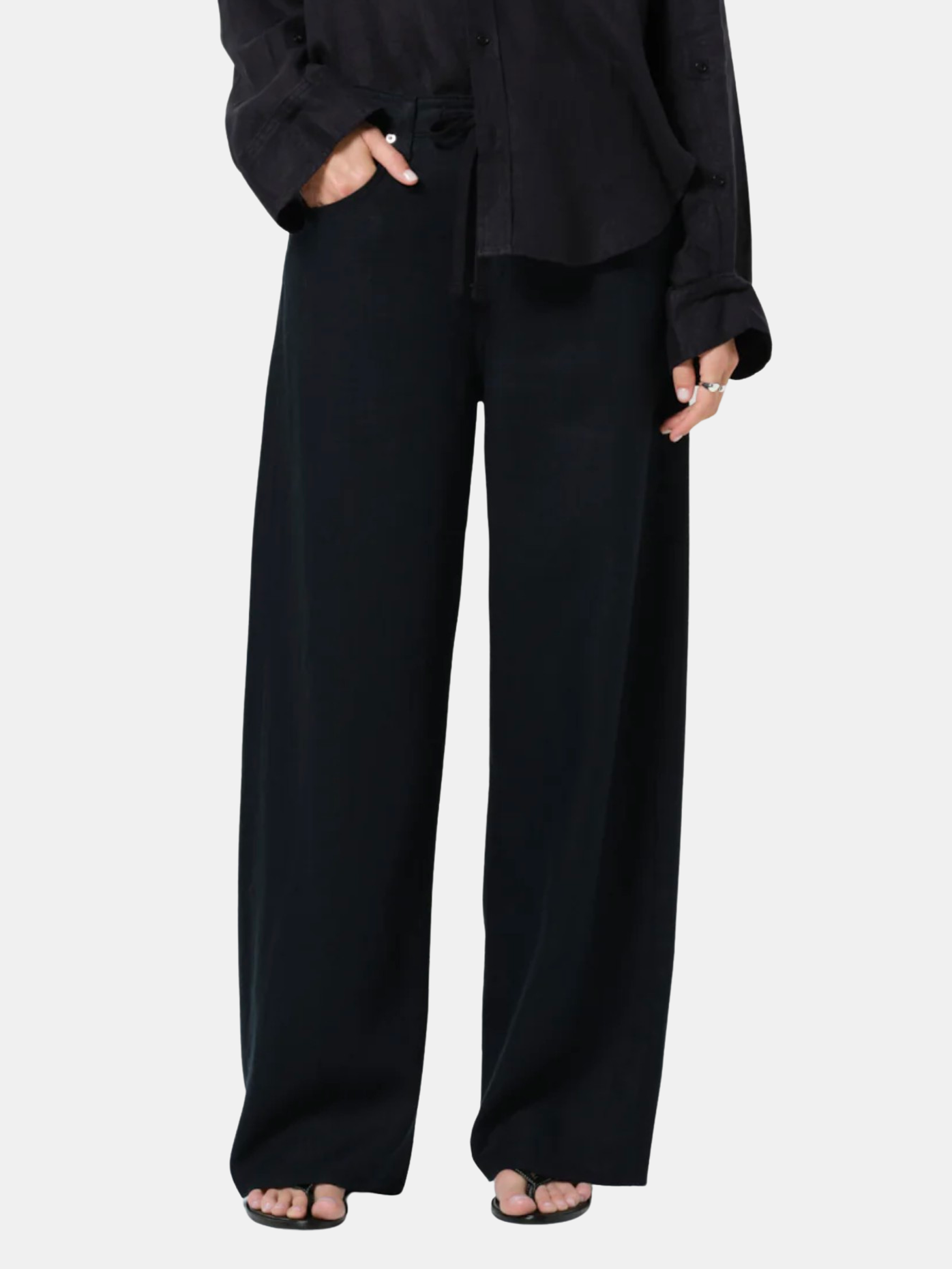 The Brynn Drawstring Trouser offers a relaxed fit with a comfortable drawstring waist, making it the perfect laid-back linen pant. Effortlessly stylish, this versatile trouser pairs beautifully with tonal linen pieces or the matching Kayla Shrunken shirt for a chic, coordinated look ideal for warm weather days and vacation-ready escapes. Shown in True Navy, Blue Lace, Black, Atlantis, Chocolate, and Vanilla.