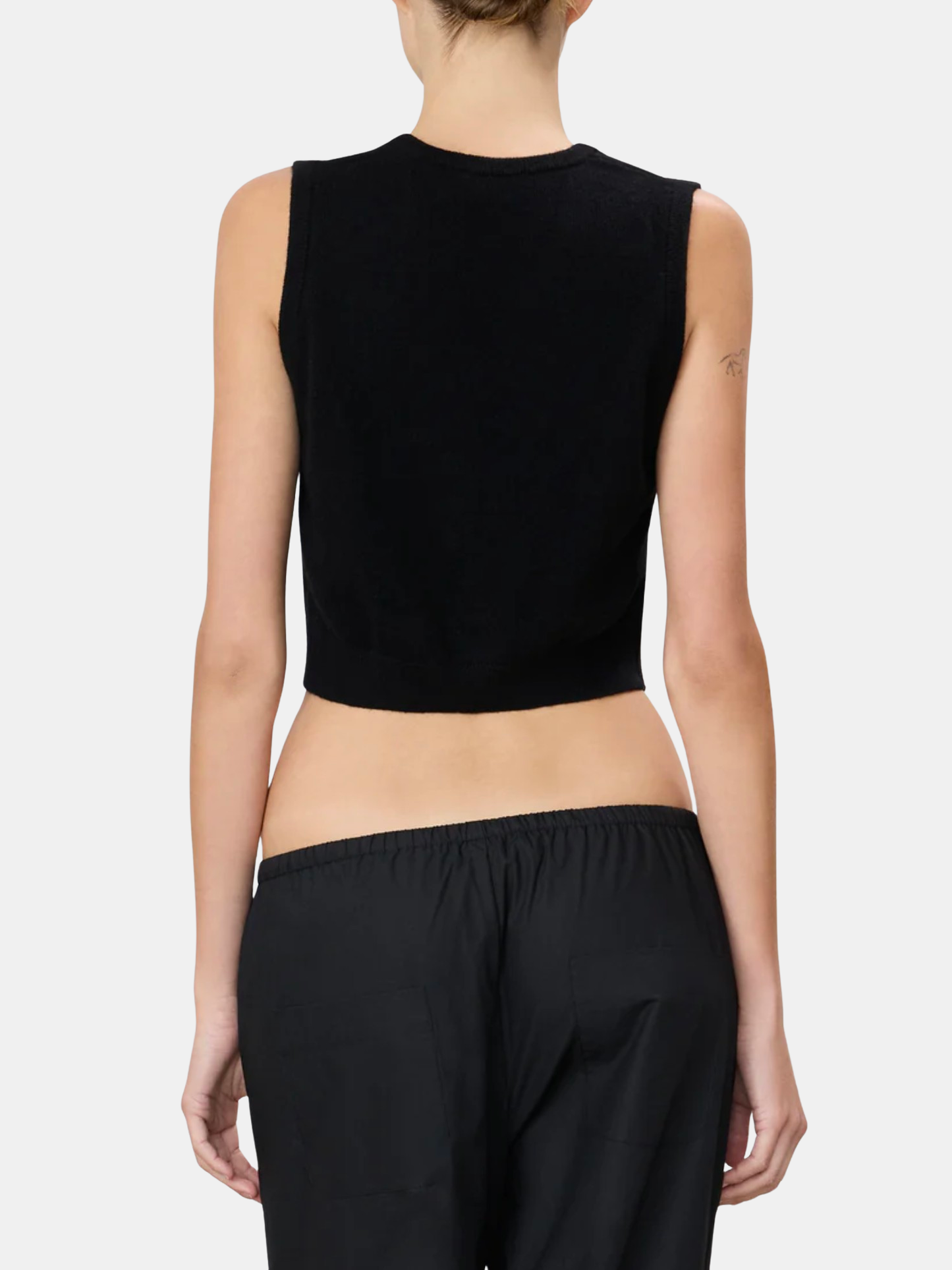 ÉTERNE's Lenny vest is crafted from our ultra soft cashmere, offering a slim fit and a cropped length—a versatile essential for everyday wear. Shown in Oatmeal and Black.