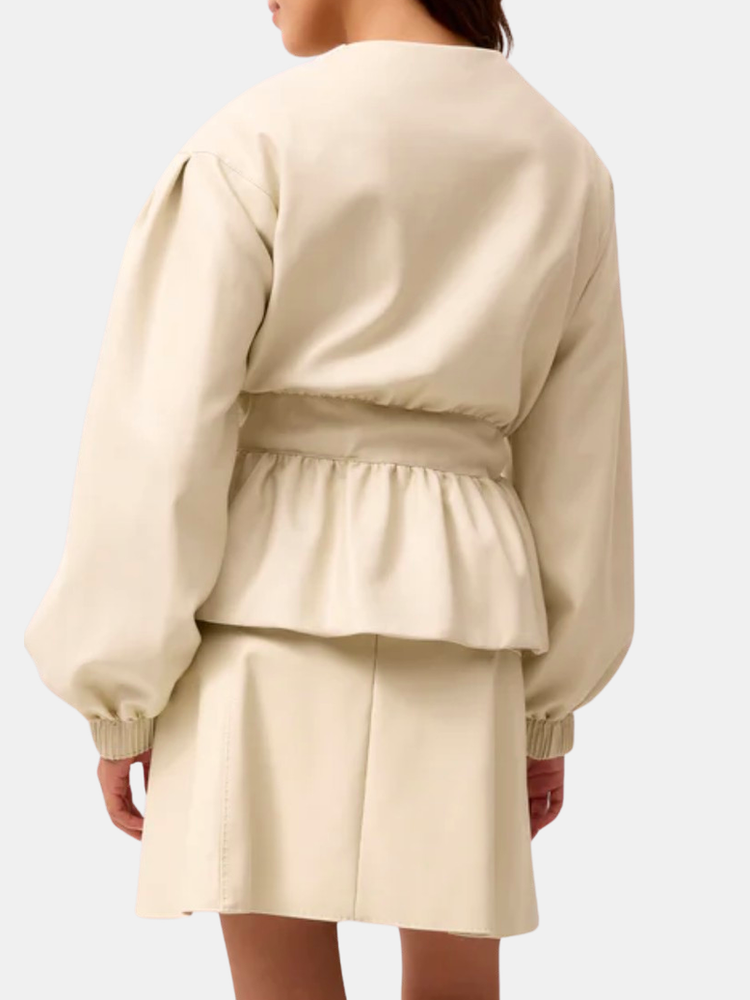 A vegan leather jacket with plenty of attitude, the Coco exhibits feminine appeal thanks to quilted and pleated details that will keep you warm in style. A tie at the wast creates cinching along with a more personalized fit, while pleated cuffs add unexpected elegance. Shown in Polar.