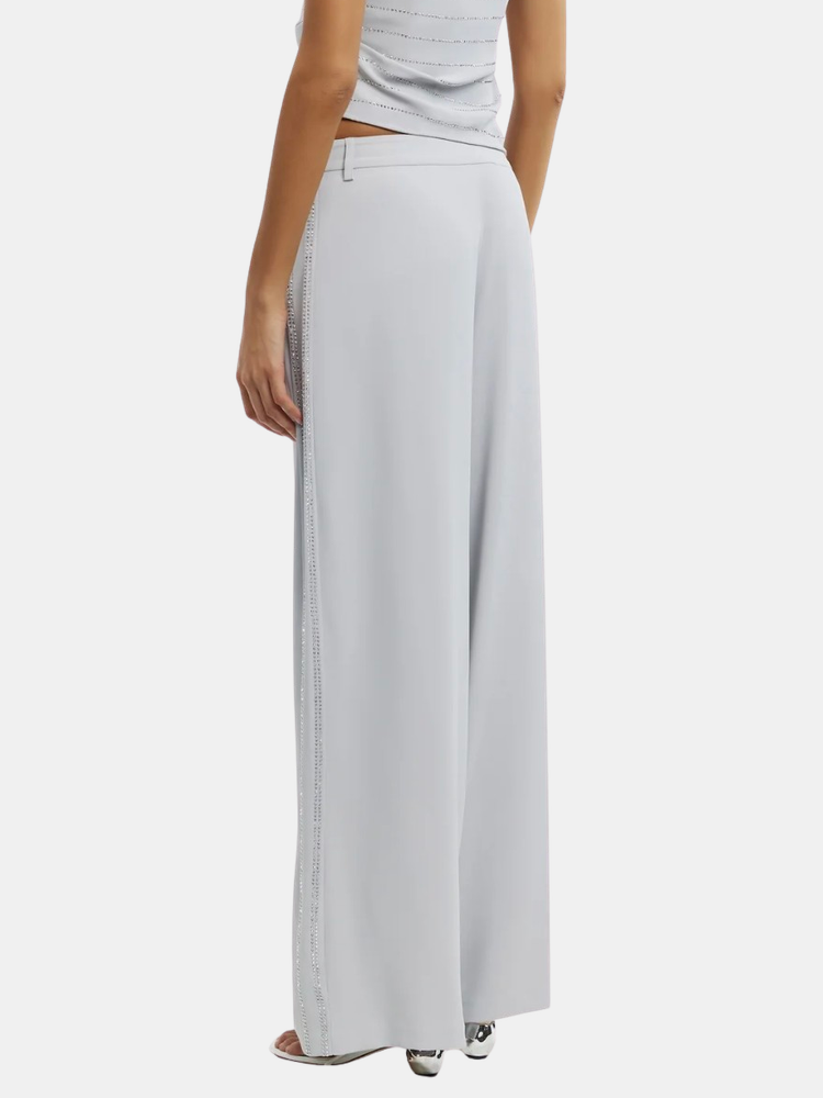 The Fraya Pant in Pewter is a modern take on tailoring. Crafted from lightweight suiting, this unlined, low-rise silhouette features a fluid straight leg, functional side pockets, and diamante stripe detailing down the sides for a subtle statement. This style is an effortless option for elevated day-to-evening dressing. Pair it with the Fraya Top for a matching look. Shown in Pewter.