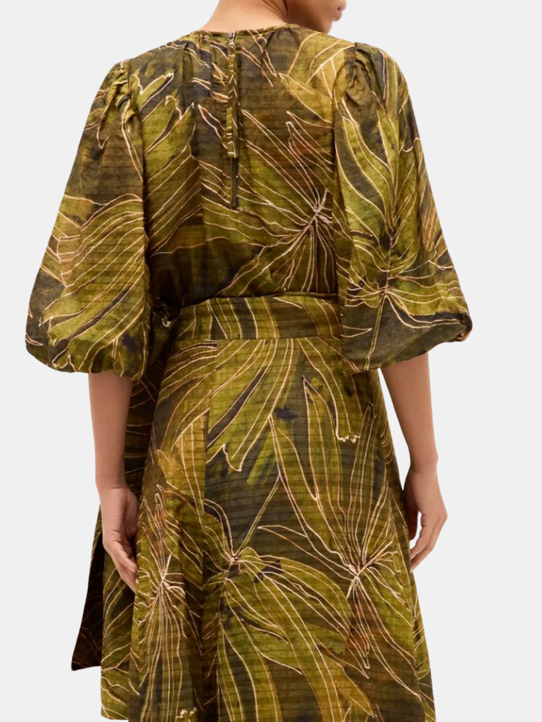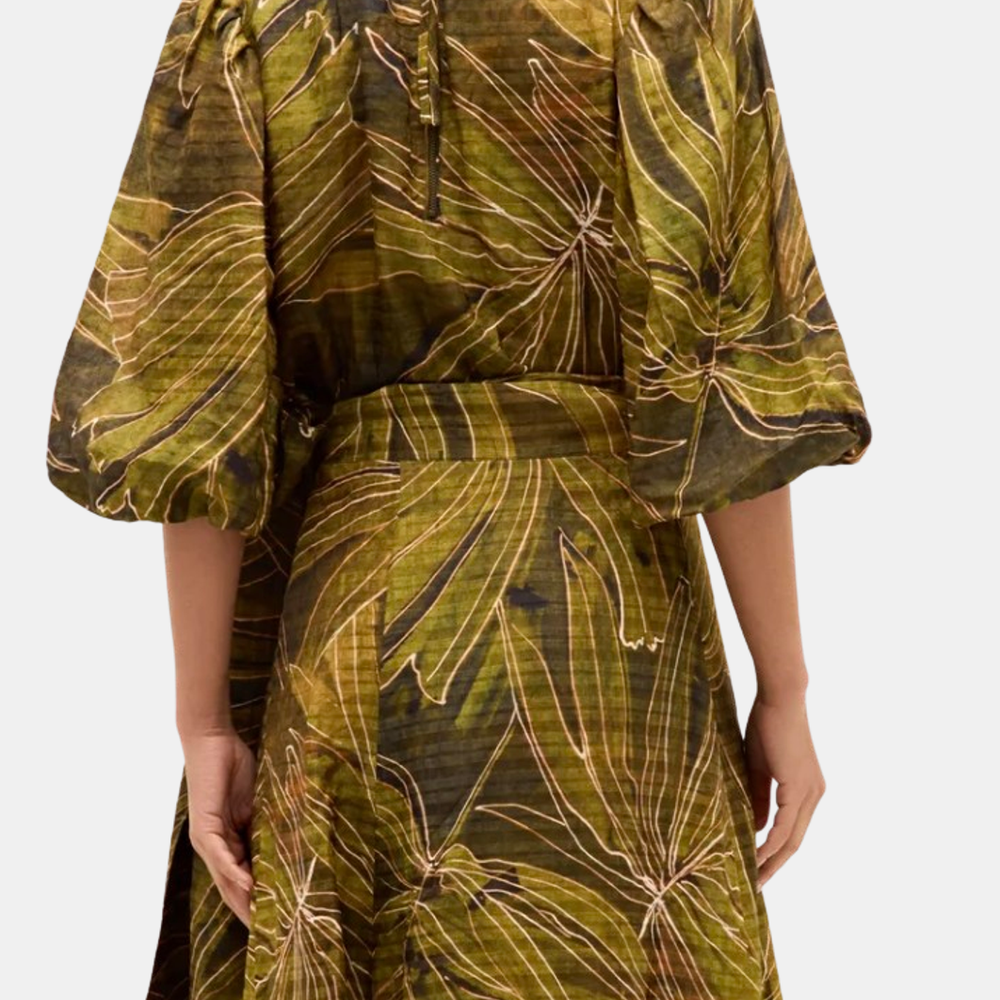 Regular price $259.60The Harly Top is a fan favorite for its striking balloon sleeves and flattering gathered neckline, but the elegant top’s appeal is amplified by expert tailoring and subtly textured fabric. The slip-on style is pictured here in Canopy, a moody palm print in deep olive green. Pair it with the matching Estine Skirt for a signature fall set. Shown in Canopy.