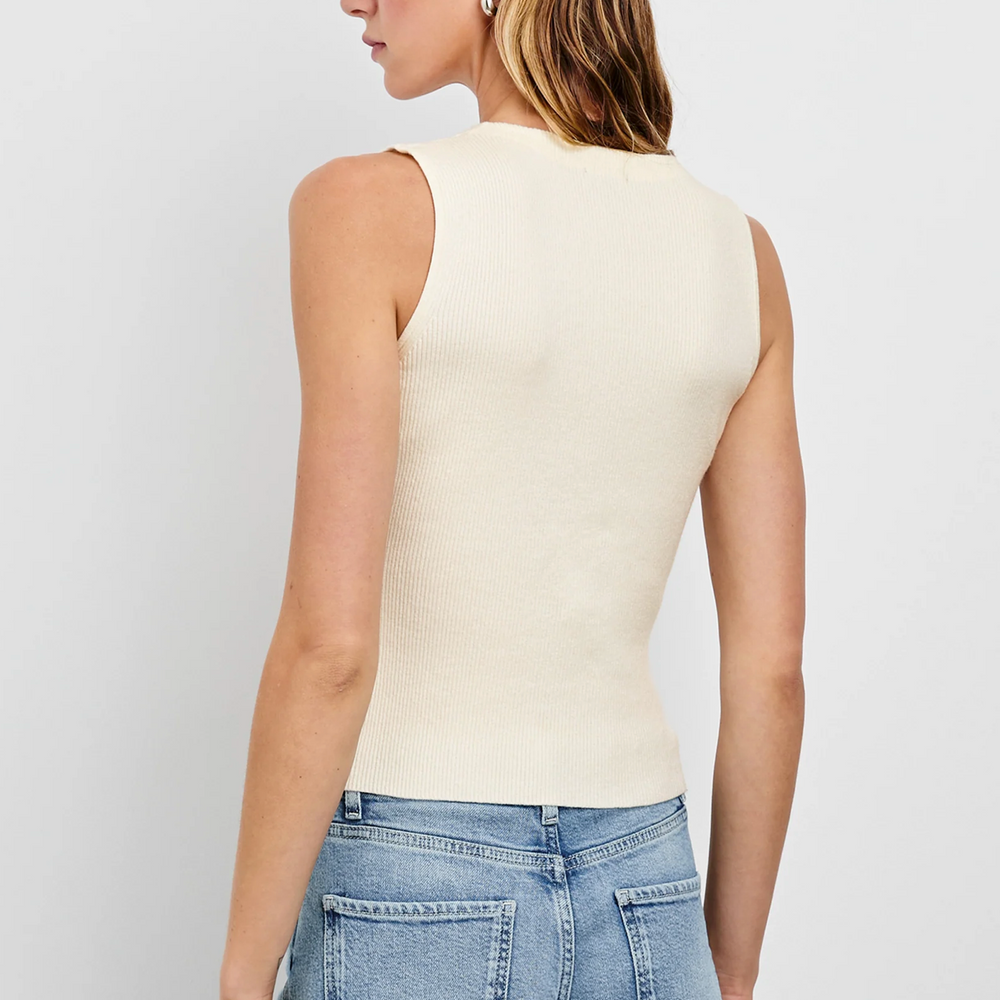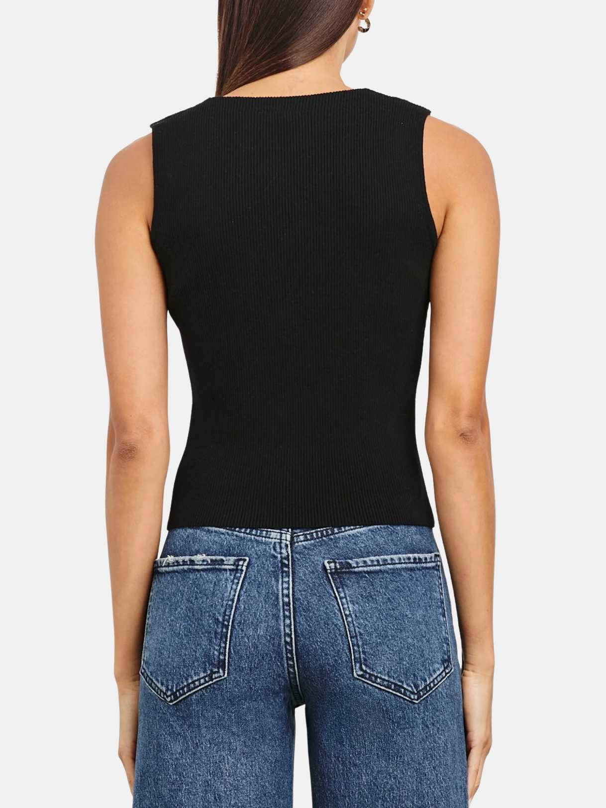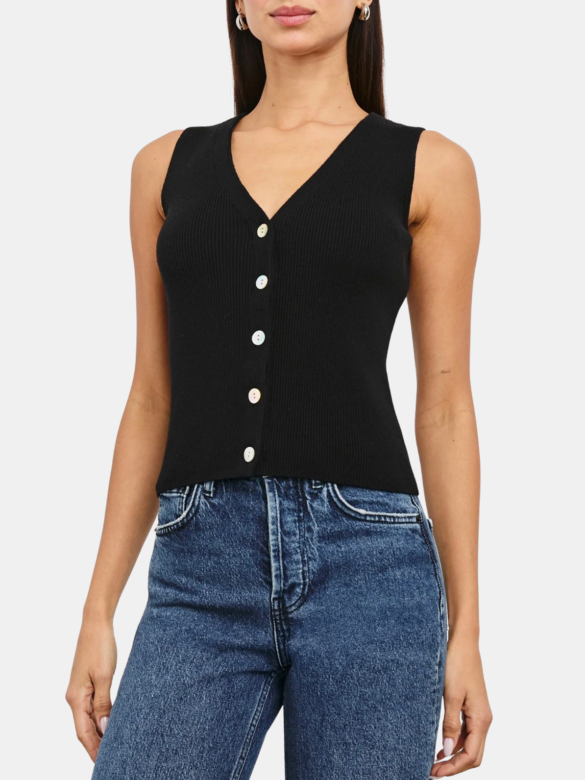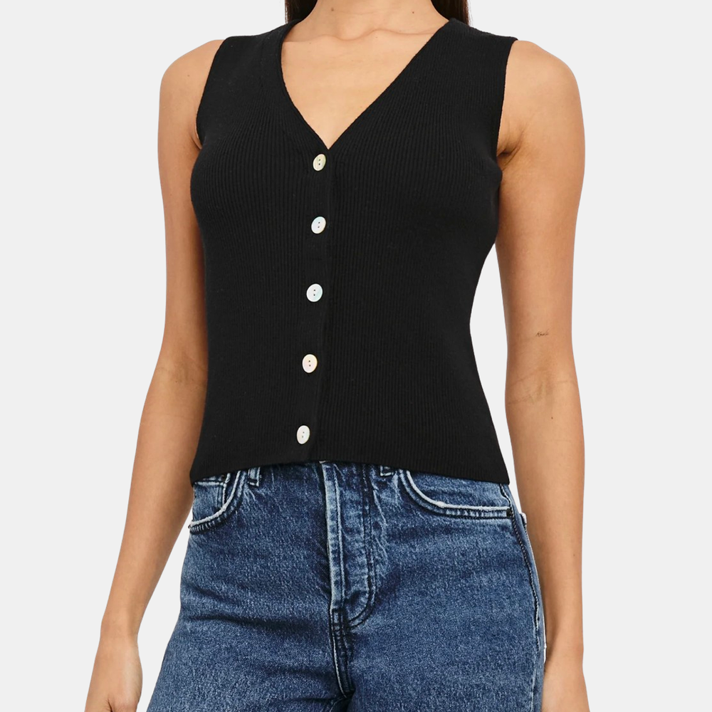 Say hello to the best vest you can get your hands on this season. This sleeveless top is made from cozy luxe cotton and complete with a V-neckline and full-length buttons. Shown in Oatmeal, Black, and Ivory.