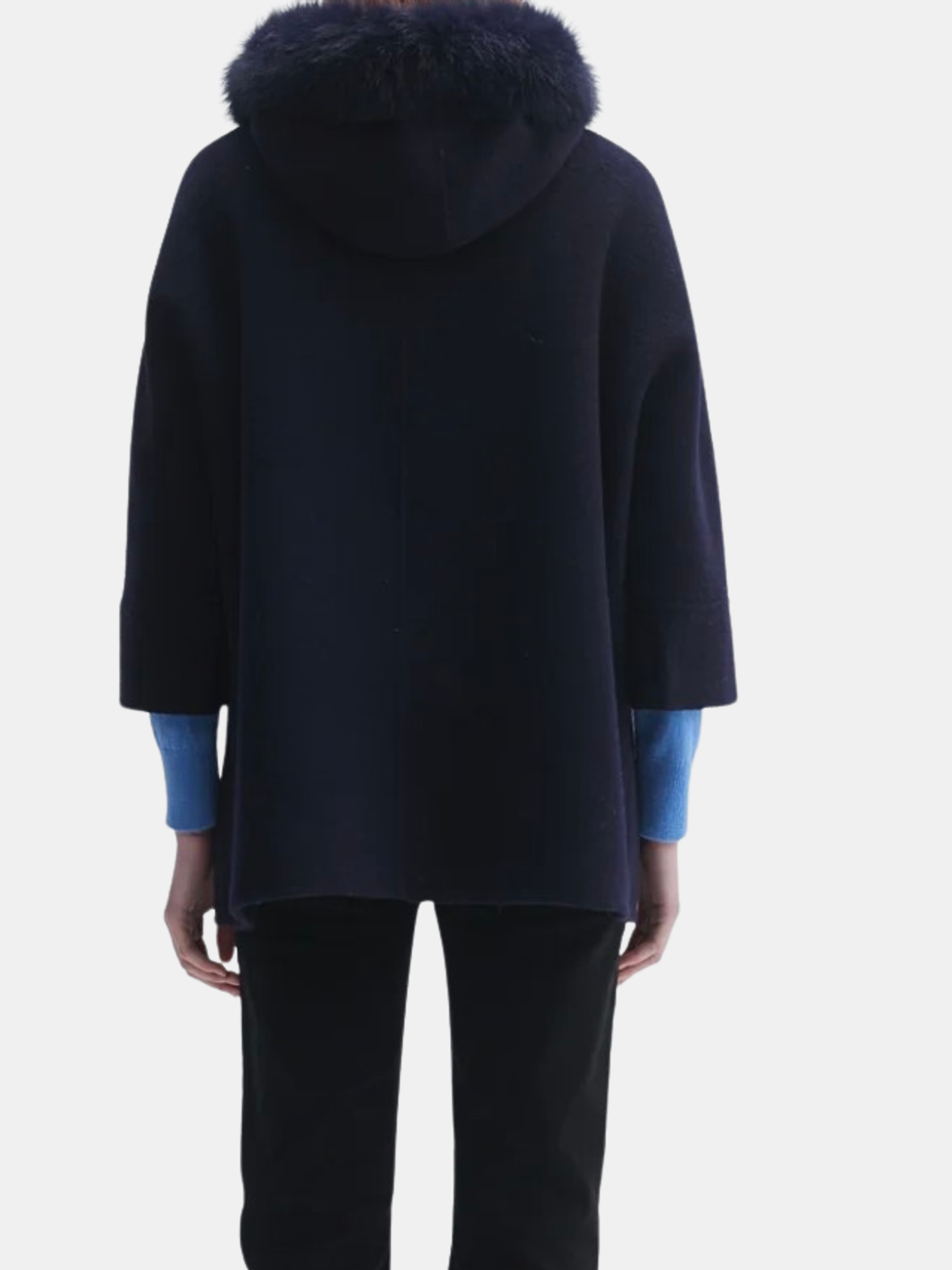 A simple and relaxed silhouette of the perfect piece with detachable fur trim. Crafted from a signature double-faced cashmere in 3/4 sleeves, this jacket promises both style and comfort, making it an essential addition to your everyday look. Shown in Navy.