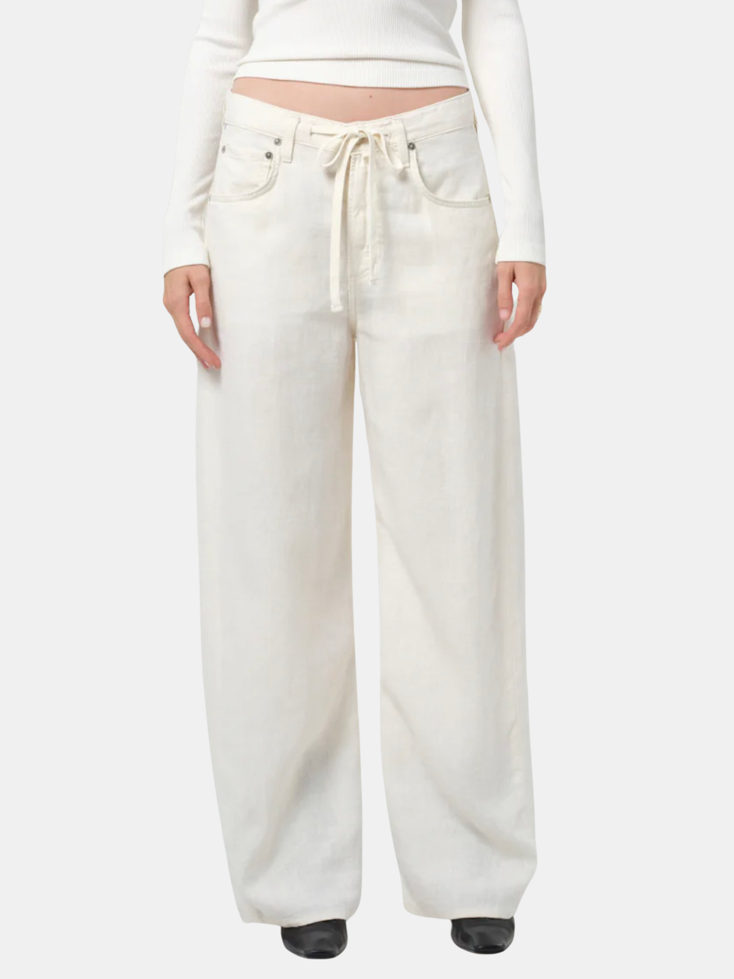 The Brynn Drawstring Trouser offers a relaxed fit with a comfortable drawstring waist, making it the perfect laid-back linen pant. Effortlessly stylish, this versatile trouser pairs beautifully with tonal linen pieces or the matching Kayla Shrunken shirt for a chic, coordinated look ideal for warm weather days and vacation-ready escapes. Shown in Chocolate and Vanilla.