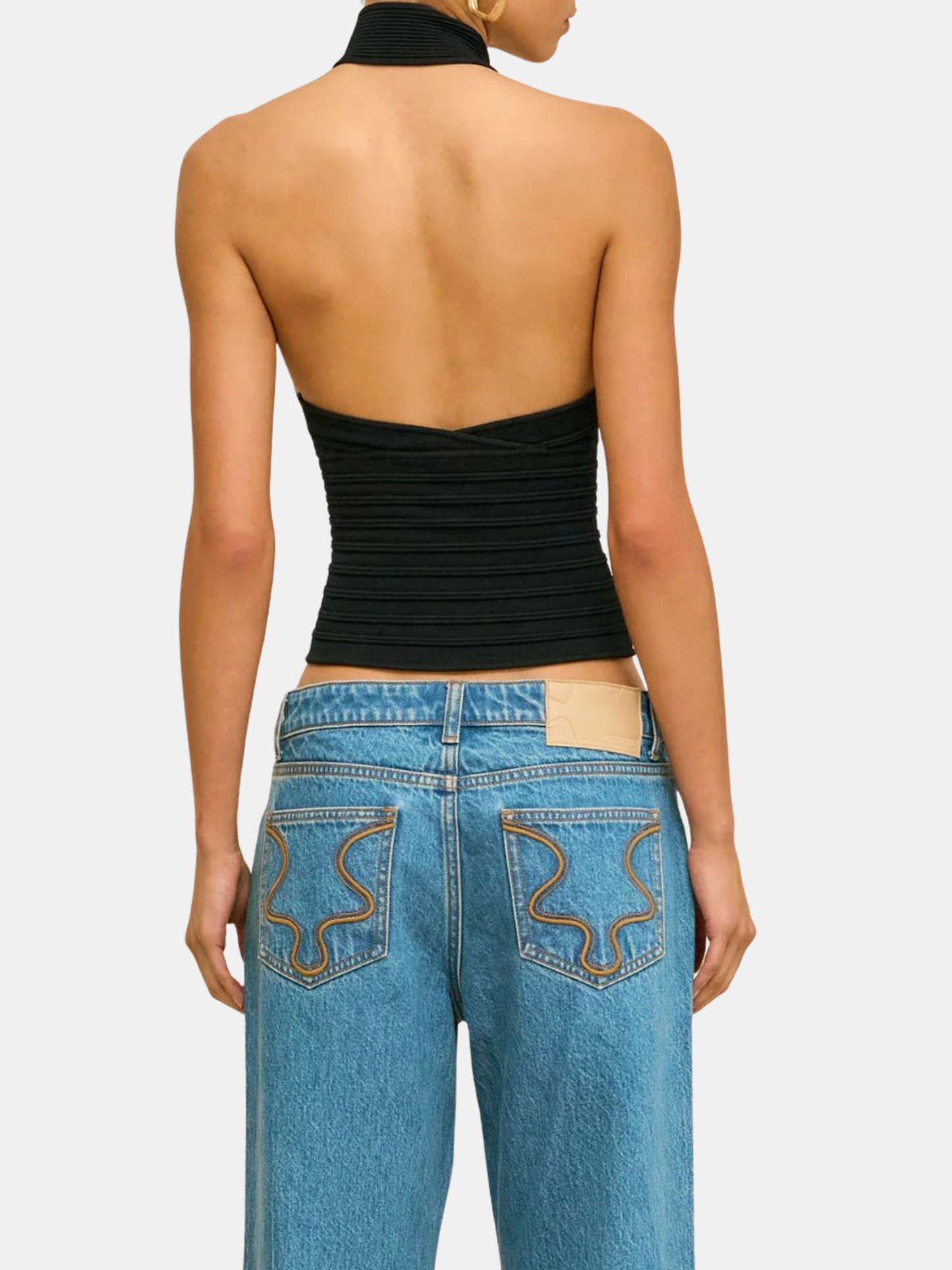 A sleek knit top featuring a keyhole neckline and all over seaming details. Shown in Black.