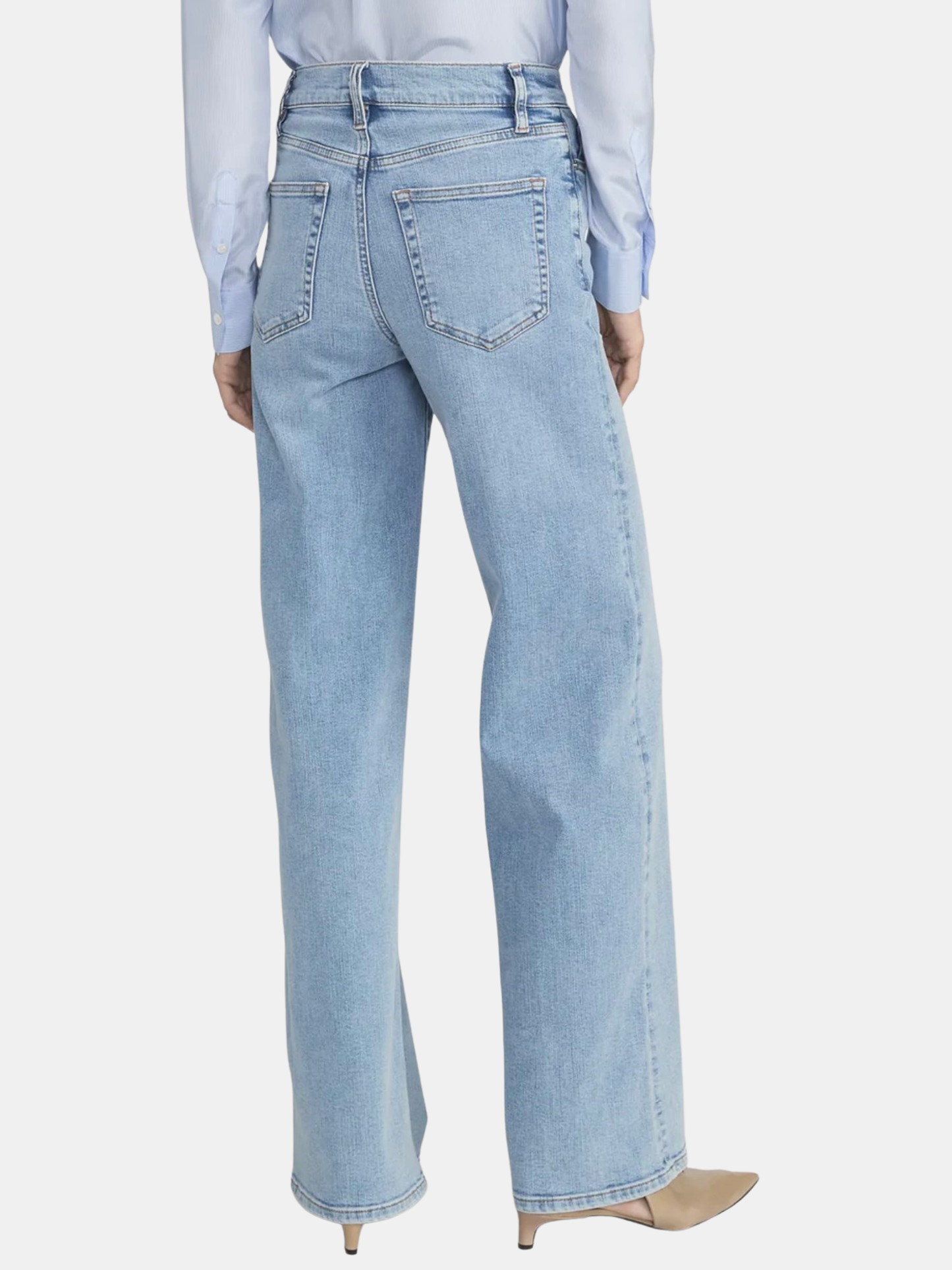 This silhouette features a flattering high-rise waist, fitted hip, and subtle wide-leg flare that hits at the floor. Crafted from sustainable super-stretch denim for effortless all-day wear. Ultra-stretch denim with superior recovery. This denim adapts to your body for comfort & fit. Shown in Ripple.