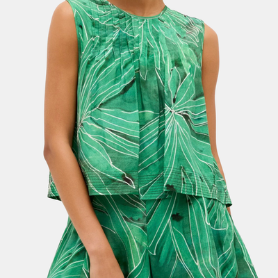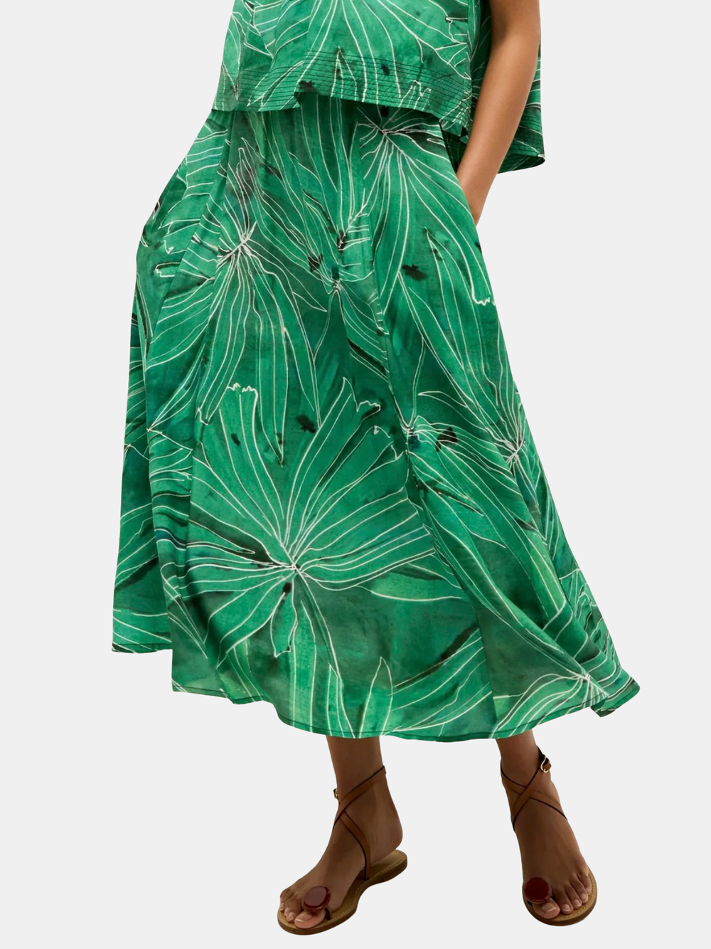 With a voluminous skirt, an elastic waistband, and pockets, the new Sasha skirt is as fun to wear as it is flattering. This season, we’ve played up the romance of the silhouette with the addition of a saturated botanical in deep emerald green. Shown in Amazon.