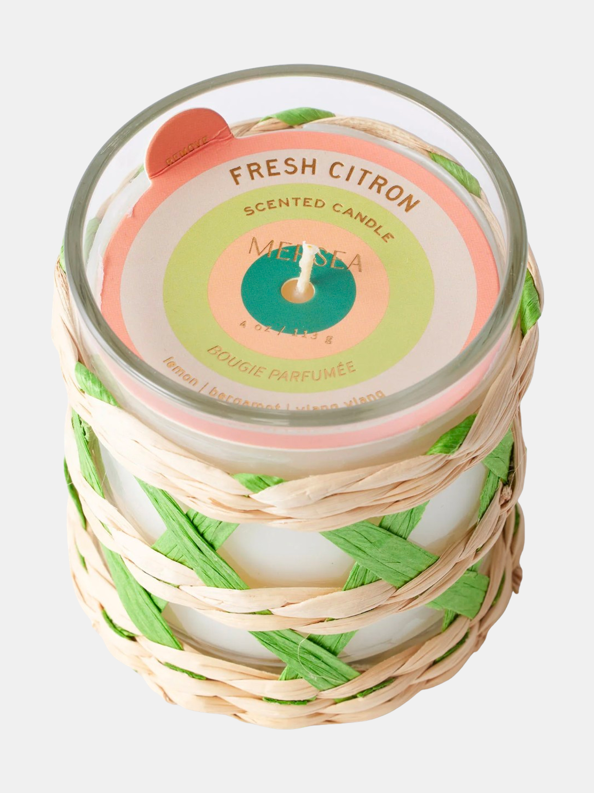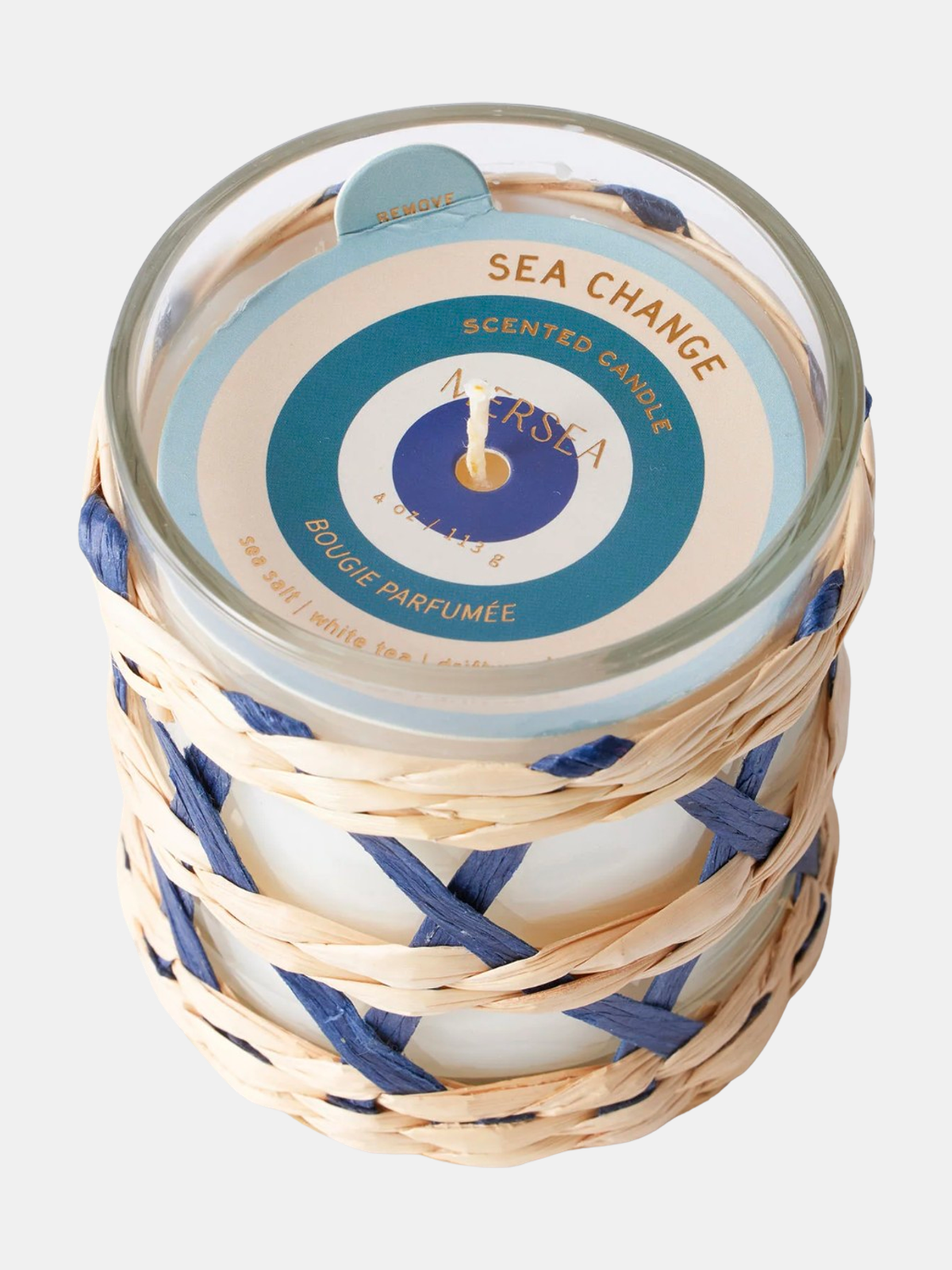 Meet the Seagrass Candle, where coastal charm meets summertime elegance. This 4-ounce candle is housed in a sleek glass vessel, wrapped in hand-woven seagrass that changes color with each scent. It’s the perfect size—not too big, not too small—adding just the right amount of decorative flair to your space. Whether you’re looking for a subtle reminder of the sea or a little touch of nature’s beauty, this candle will transport you to a serene, seaside dream every time you light it. Shown in Beach Bungalow, Cabana Flower, Fresh Citron, Sea Change.