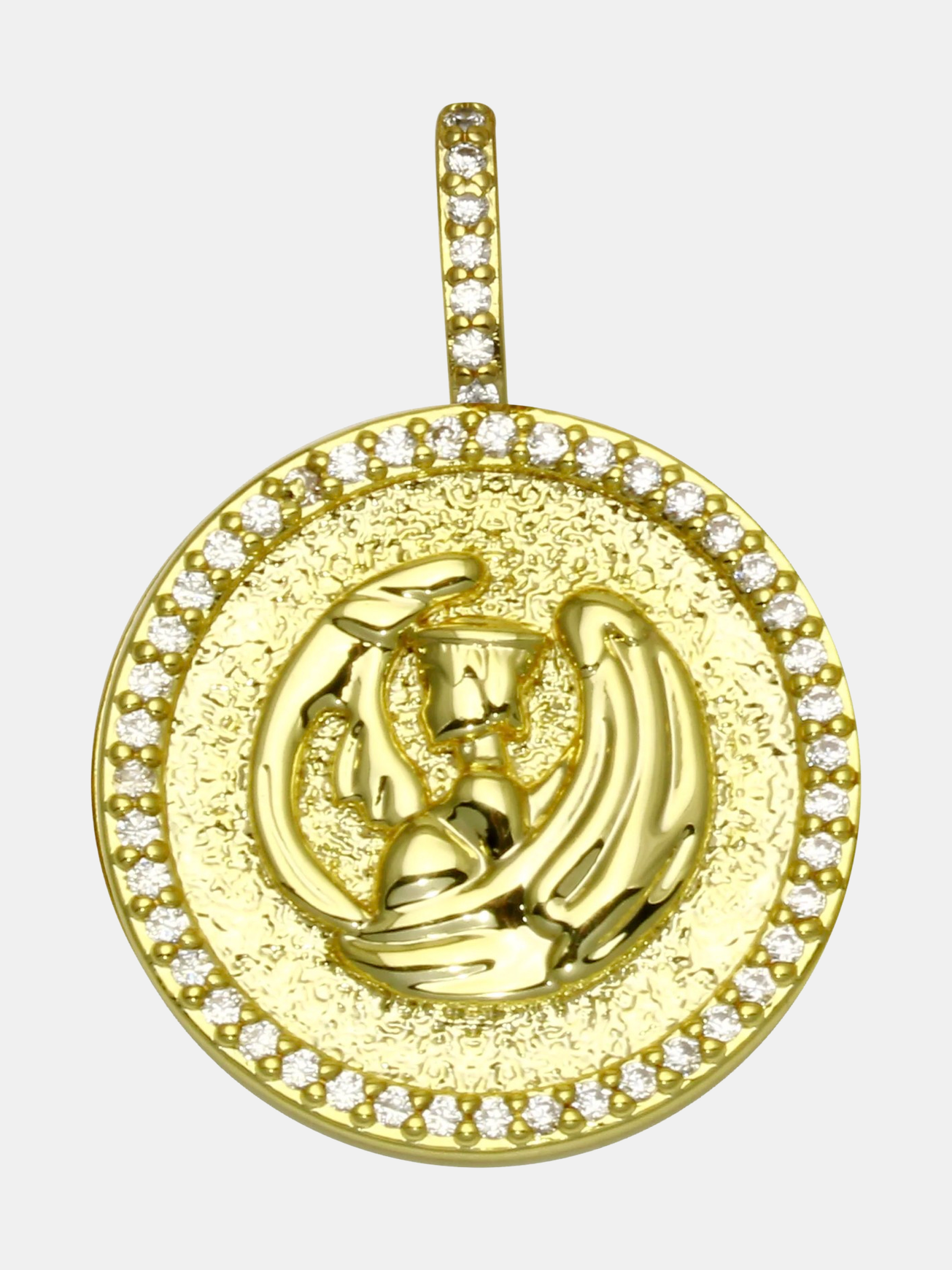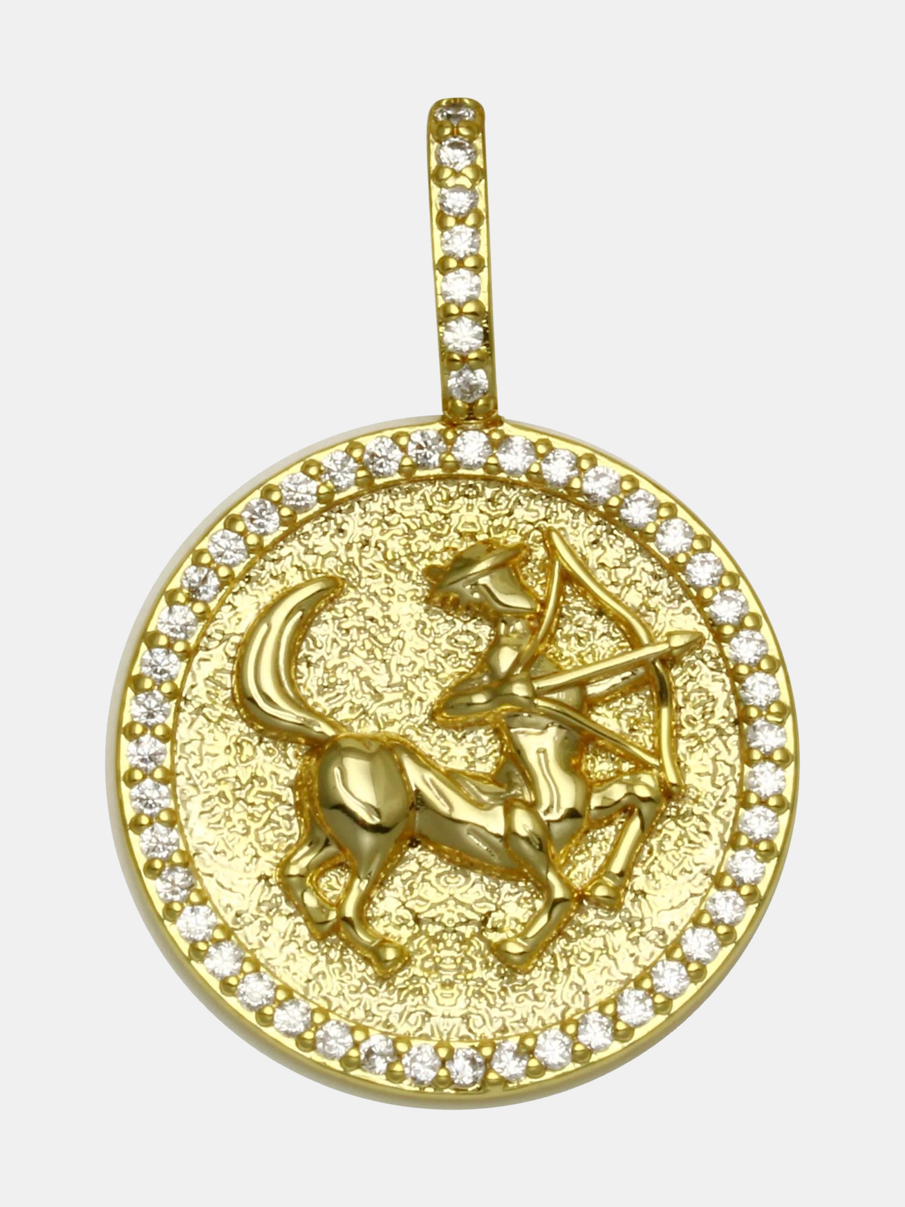 Sparkly and bold Zodiac charm is a stunning symbol of the sign that means most to you. Stunningly crafted with shiny cubic zirconias on the edge. This is the perfect centerpiece to complete your layer. Shown in Aquarius, Capricorn, Virgo, and Sagittarius.
