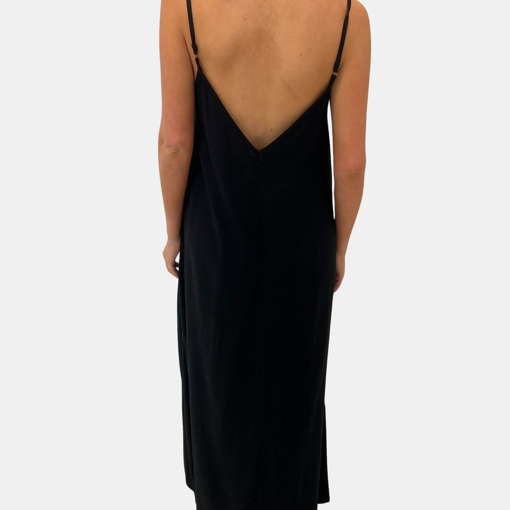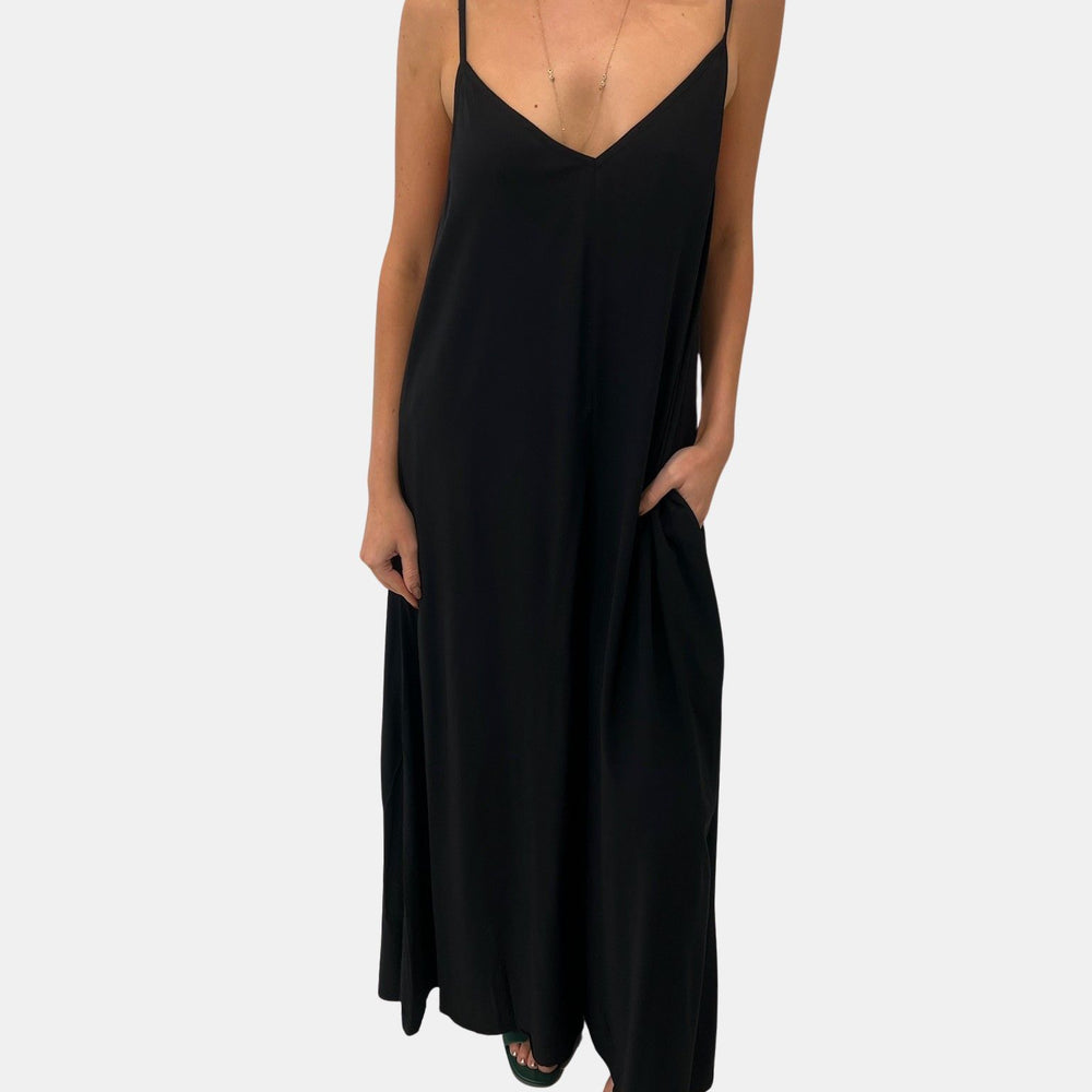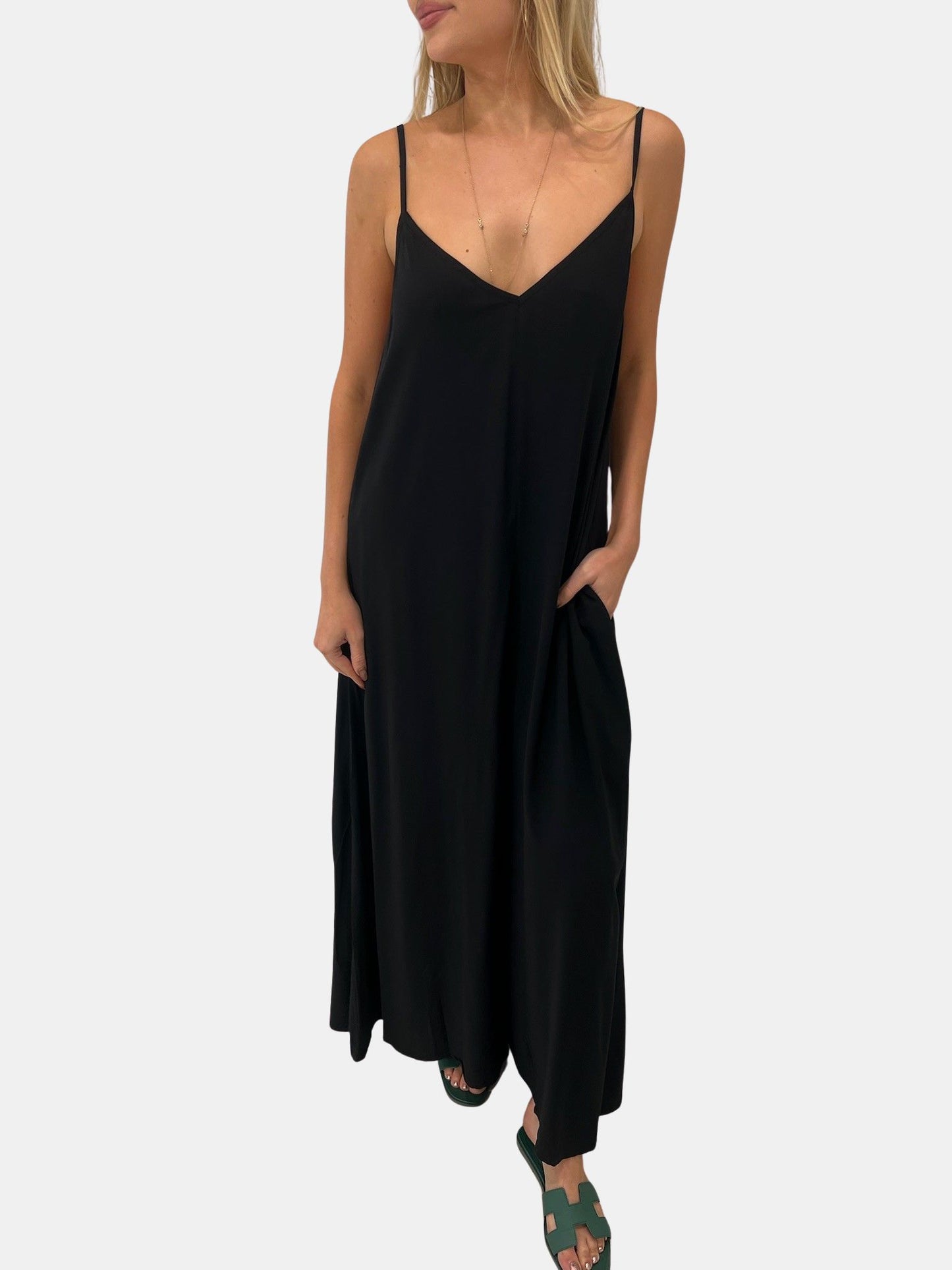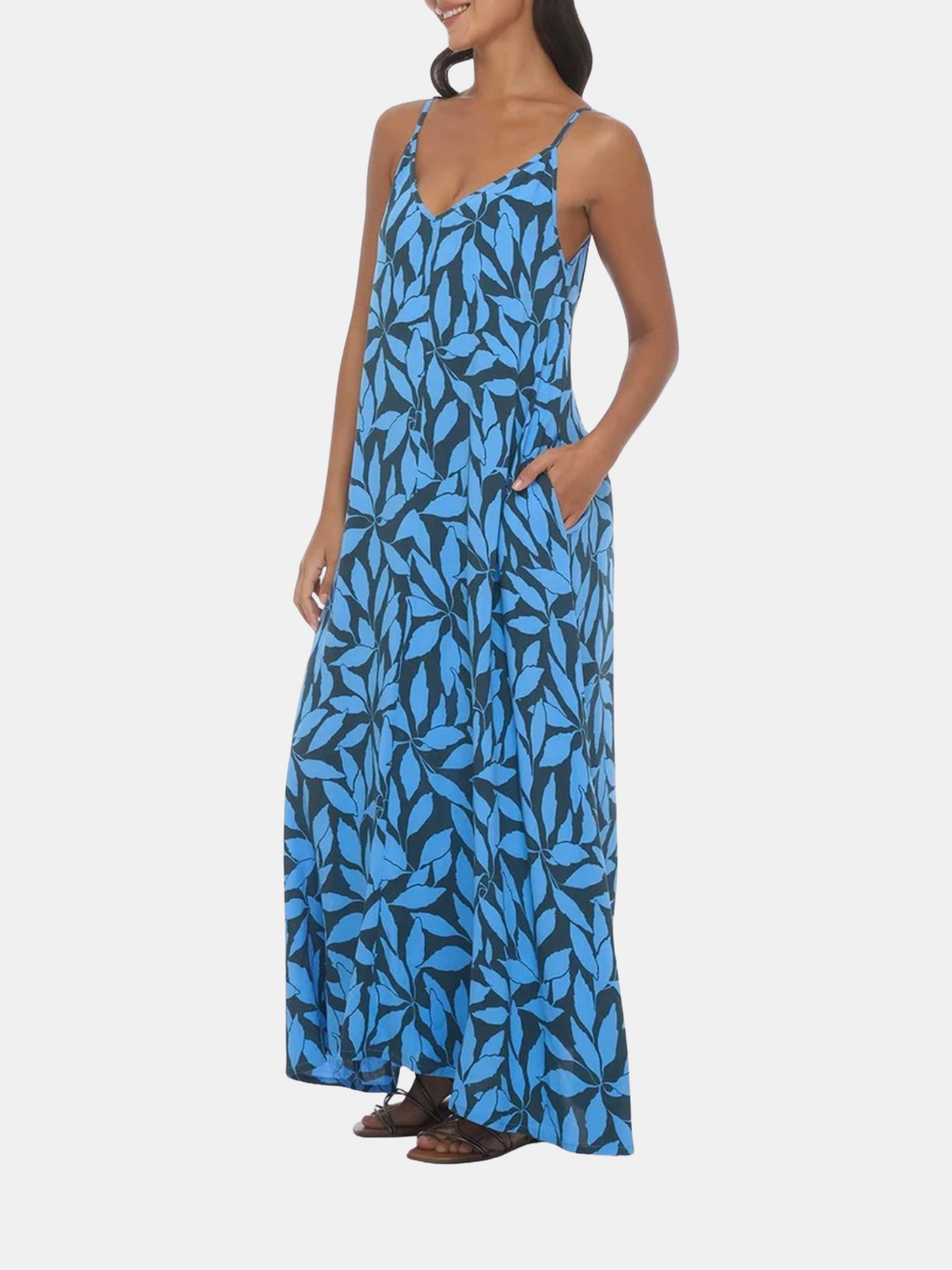 Enjoy easy, all-day comfort with the stunning Eluna Dress. This flowy maxi dress is designed with practical details like hidden side pockets and adjustable shoulder straps. The classic V-neck silhouette drapes beautifully, making it an ideal choice for any casual occasion where comfort and style are key. Shown in Laleench and Black.
