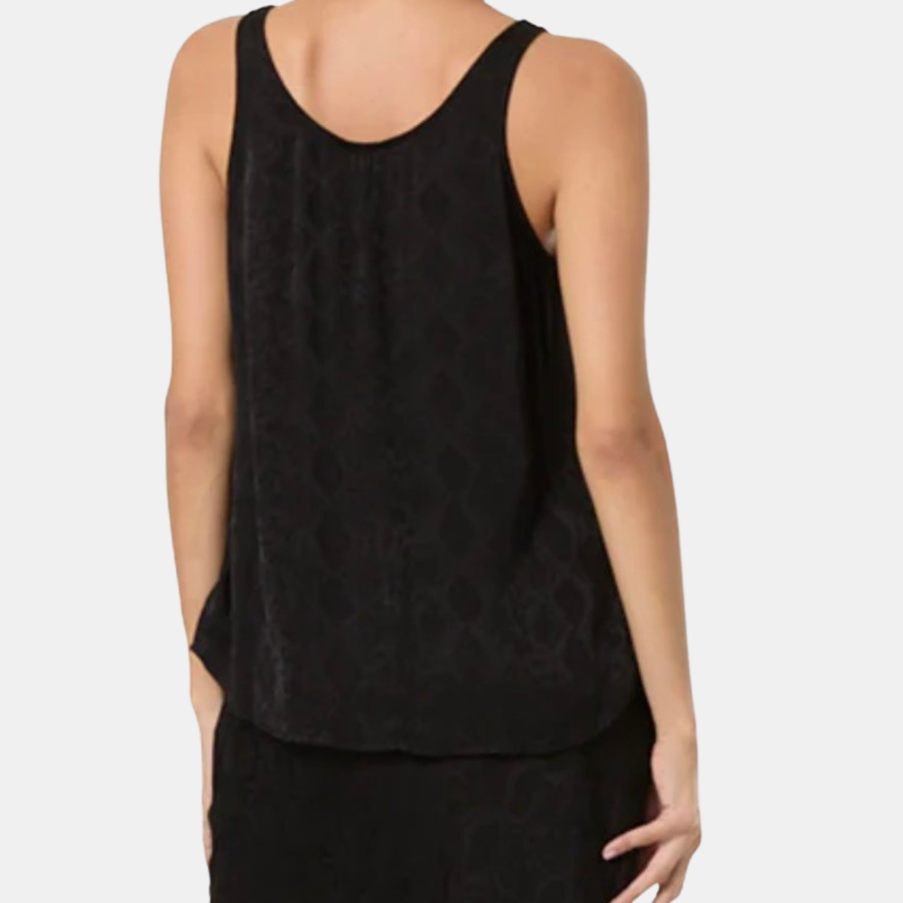 The Nari Tank is a wardrobe staple. Cut in a classic silhouette with silky fabrication it is the perfect piece to style and layer. Pair with the Felicity Snake Jacquard Skirt. Shown in Black.