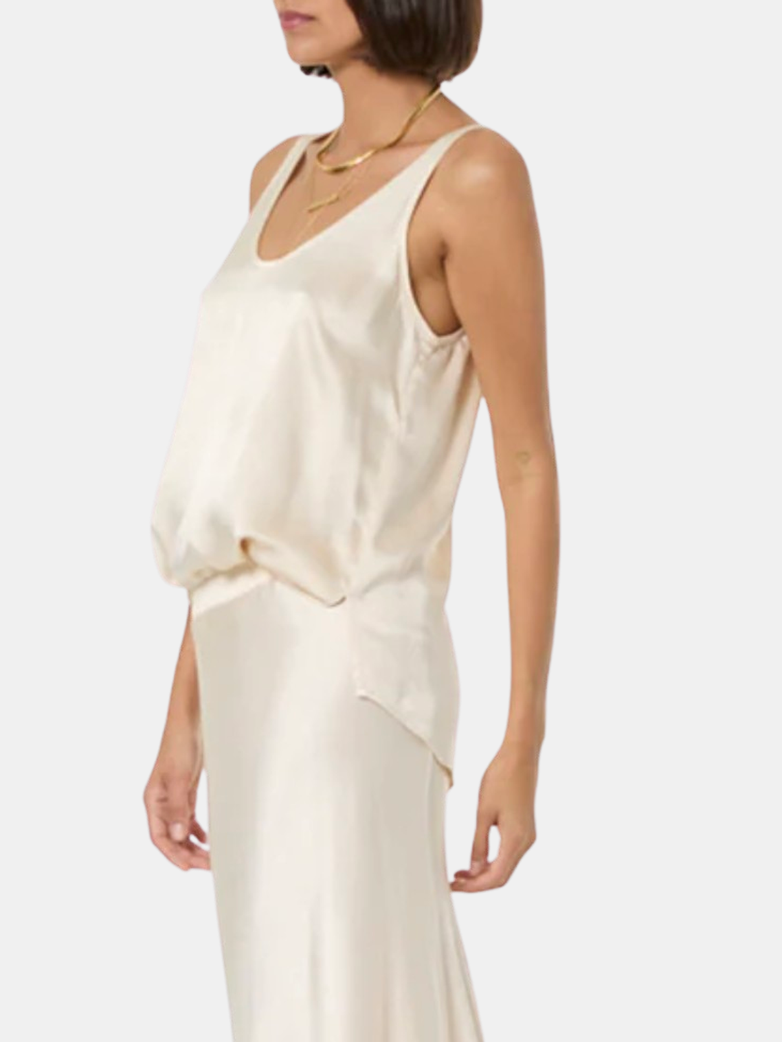 The Nari Tank is a wardrobe staple. Cut in a classic silhouette with silky fabrication it is the perfect piece to style and layer. Match with the Flossie maxi skirt to create a set. Shown in Oyster.