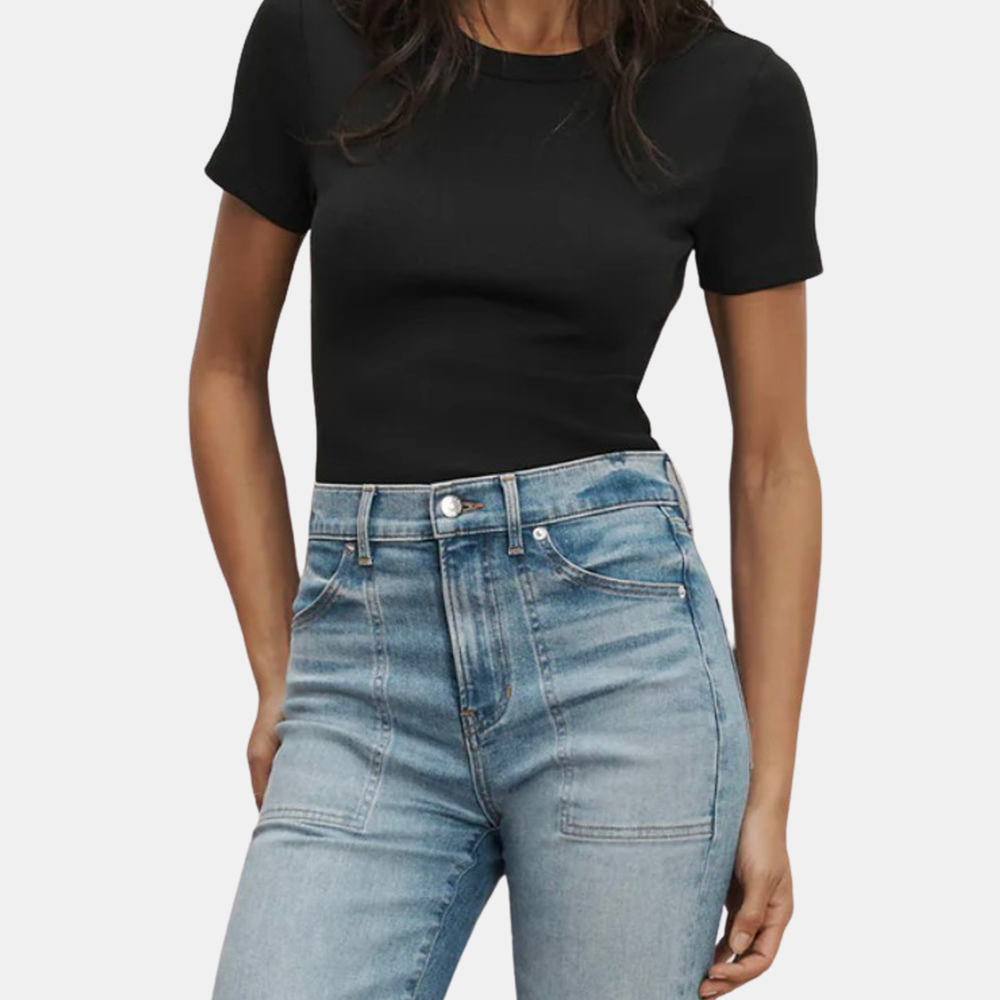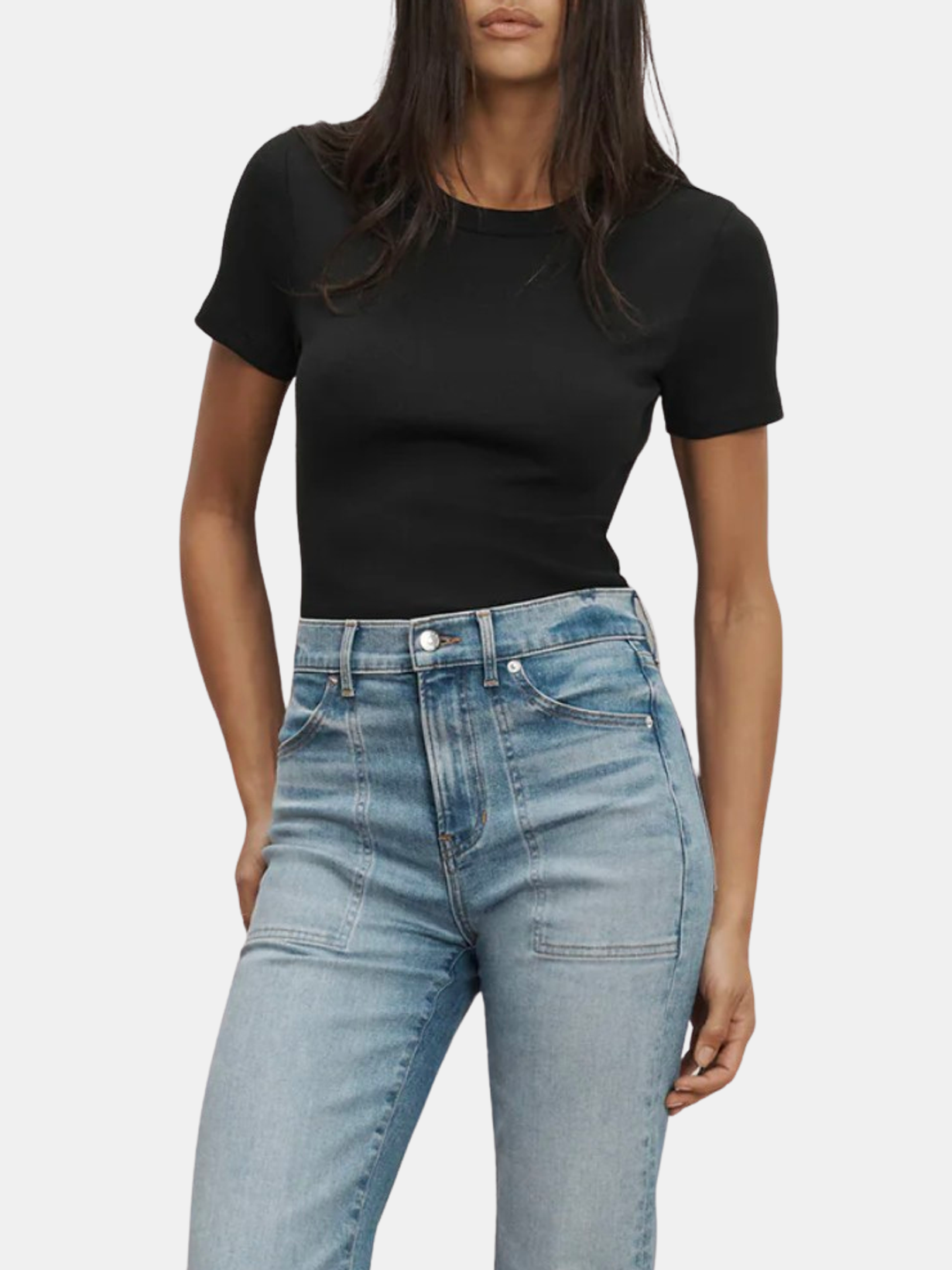 The wardrobe essential no one thinks about but everybody needs… Meet Pruitt—the basic tee. Every detail is perfected from the super-soft ribbing to the curve of the neckline to the short sleeves that fall just where you need it. Expertly crafted from premium stretch cotton, this is the ultimate foundation piece—dressed up or down, perfect on its own or as a layering essential. Shown in White and Black.