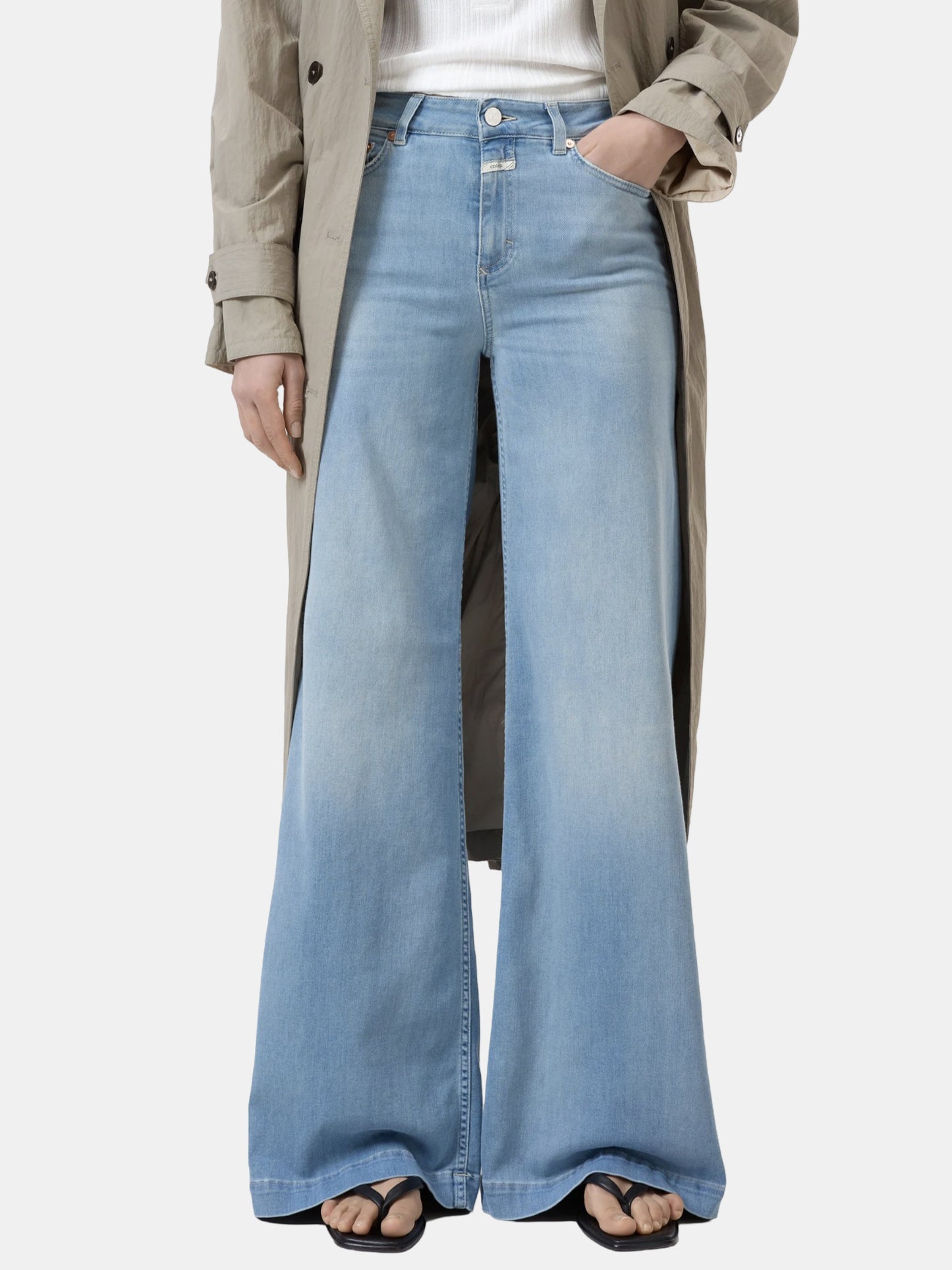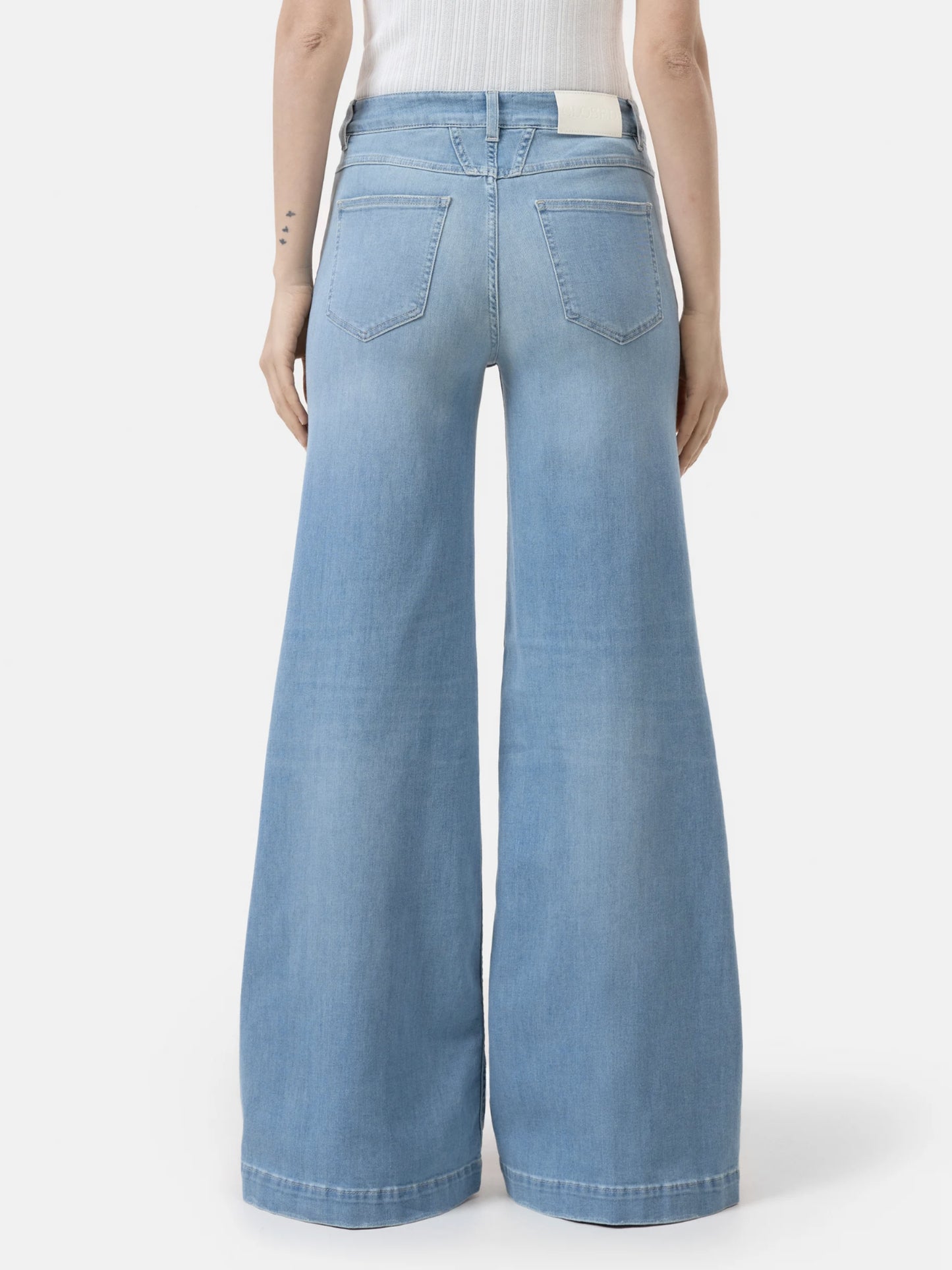 Kasey Mid Rise Patch-Pocket Wide Leg Jean