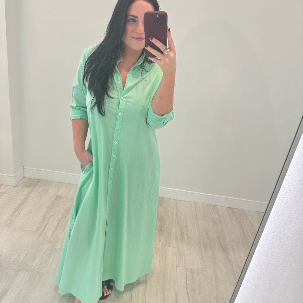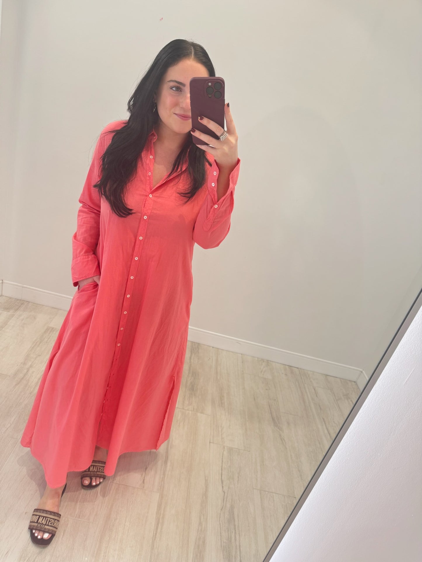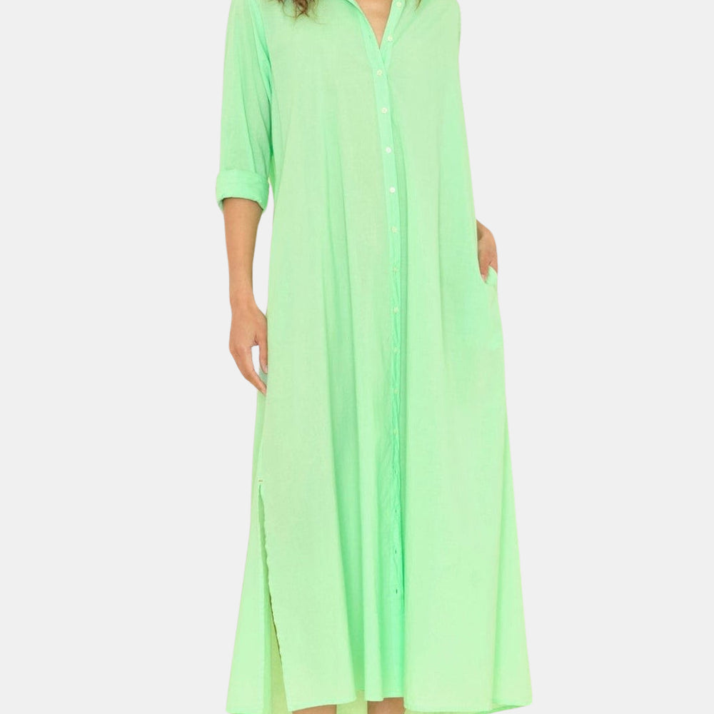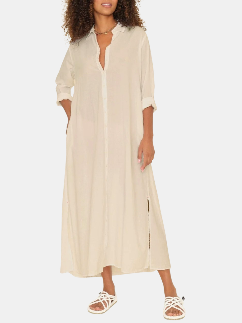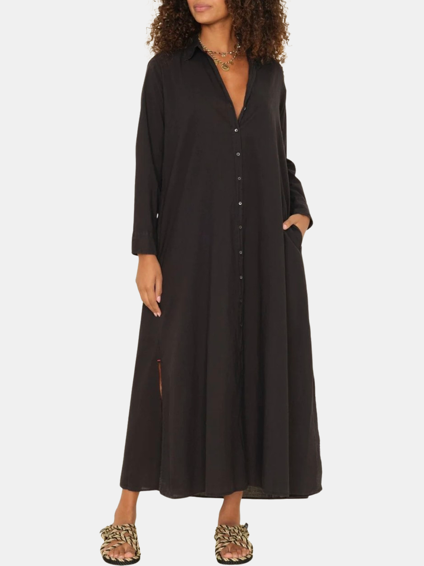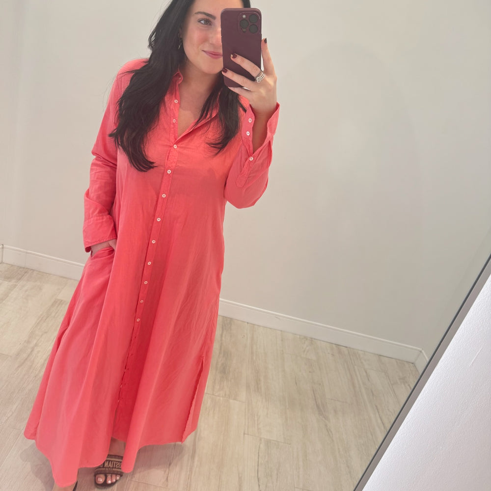 Forever Timeless. Boden is made in a classic lightweight woven cotton poplin for a lived-in look and feel. Boden is a tailored shirtdress with a button-front, side seam pockets, and hem side slits. Shown in Berry Rose, Grapefruit, Parchment, and Black.