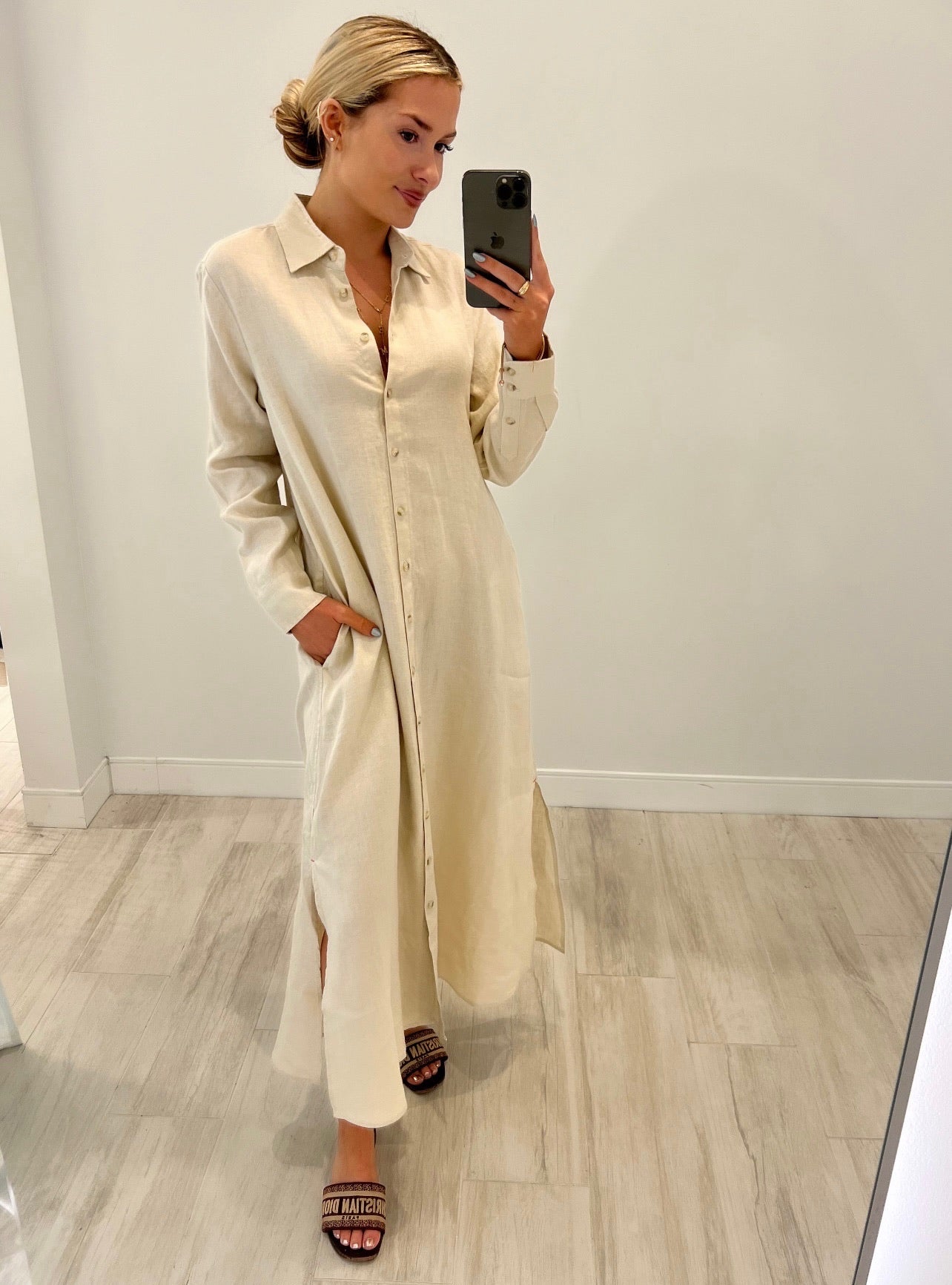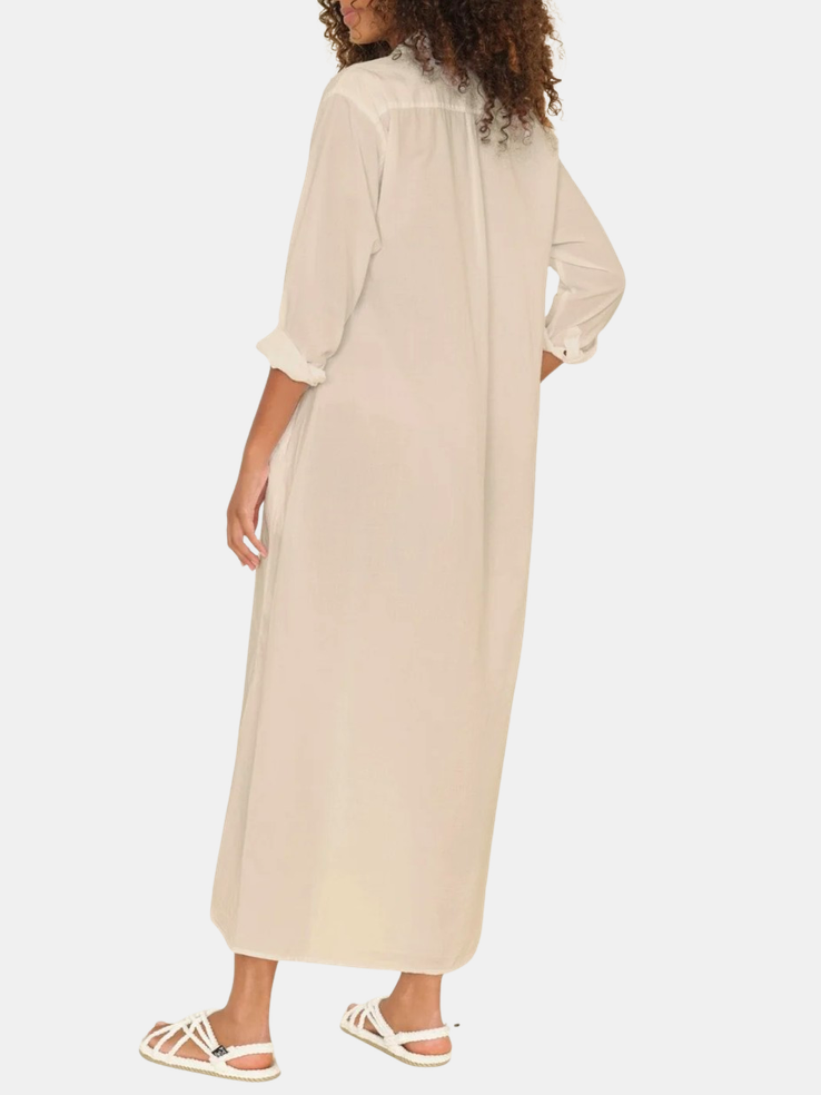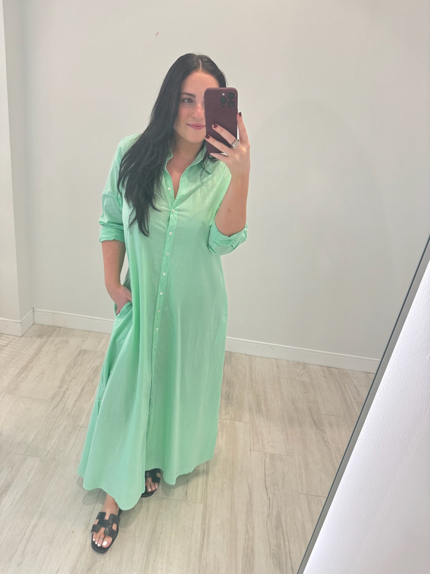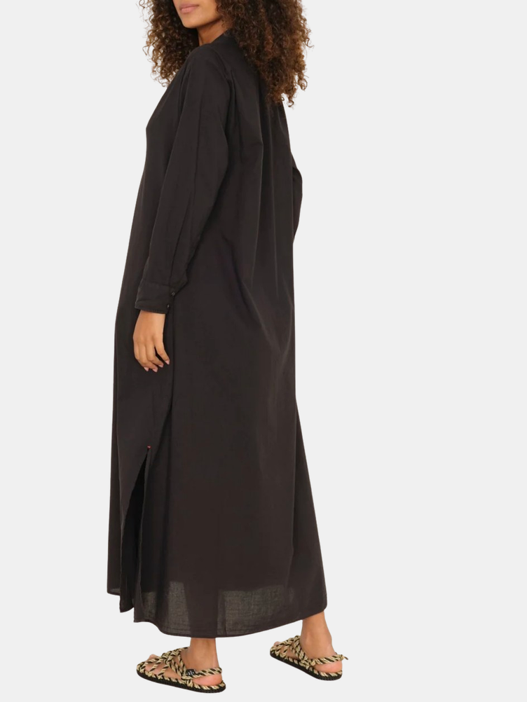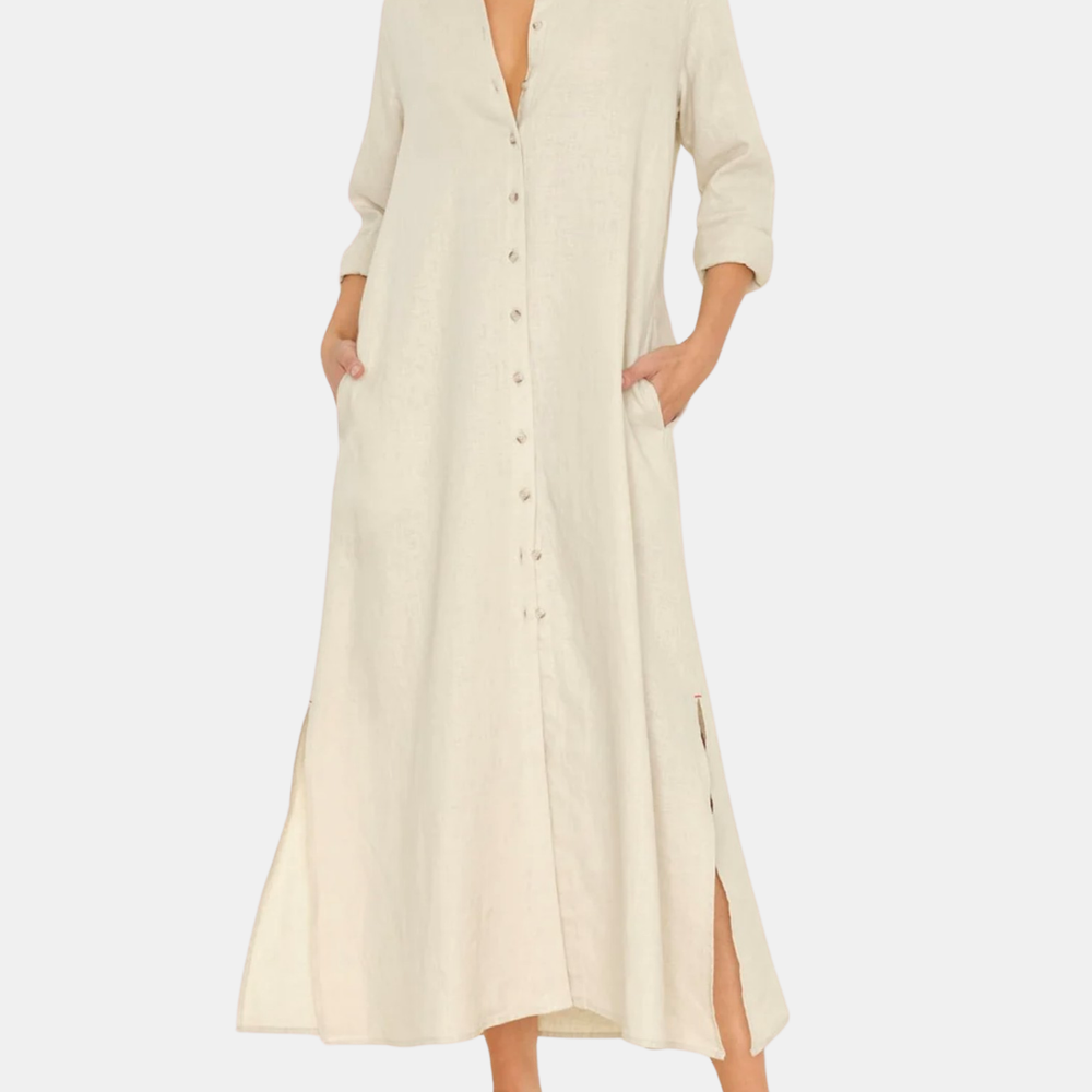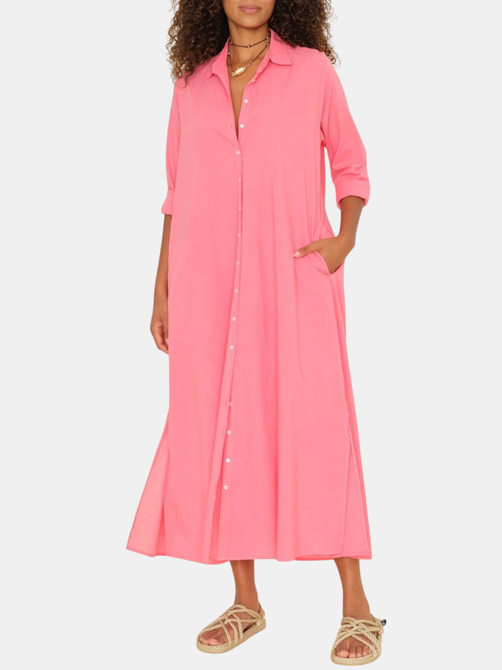 Forever Timeless. Boden is made in a classic lightweight woven cotton poplin for a lived-in look and feel. Boden is a tailored shirtdress with a button-front, side seam pockets, and hem side slits. Shown in Berry Rose, Grapefruit, Parchment, and Black.