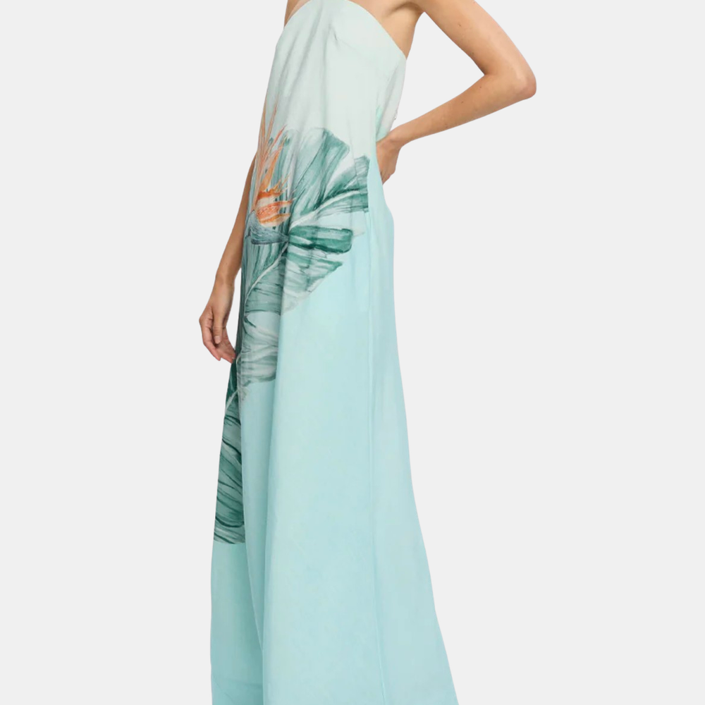 Strapless and softly structured, the Cassia Maxi Dress features a halter tie that can be left undone or fastened with intention. Its form-skimming bodice gives way to a fluid hem, offering movement without excess. The ombré base sets the tone for vivid bird-of-paradise blooms — bold, yet balanced. Designed for sun-drenched afternoons and considered evenings, Cassia carries presence with quiet conviction. Shown in Cassia.