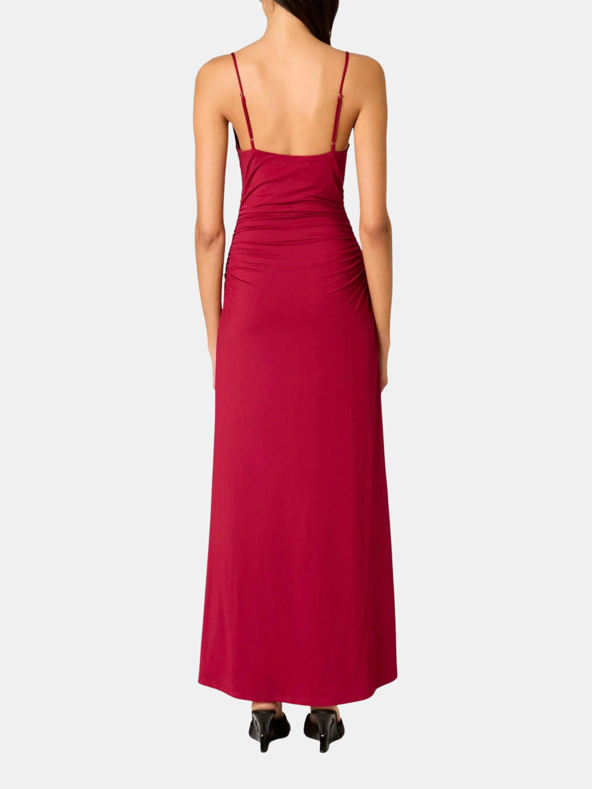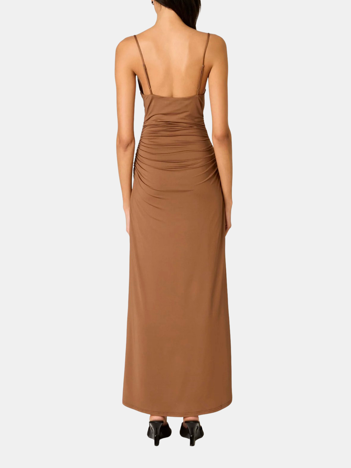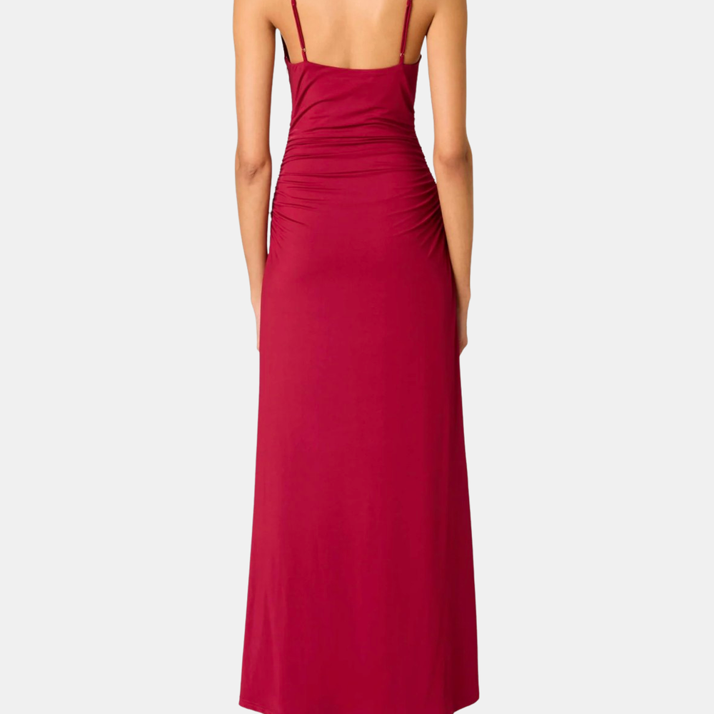 Soft, sultry, and effortlessly elegant. The Ina Dress is a figure-hugging maxi with delicate ruching that flatters in all the right places. A draped cowl neckline and adjustable straps create a refined silhouette, while the flowing hemline adds a touch of grace to every step. Made for candlelit dinners, rooftop soirées, and everything in between. Shown in Cranberry and Mocha.