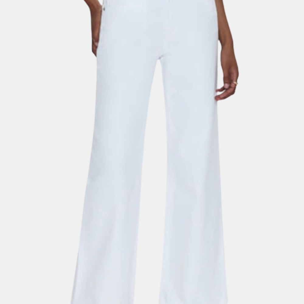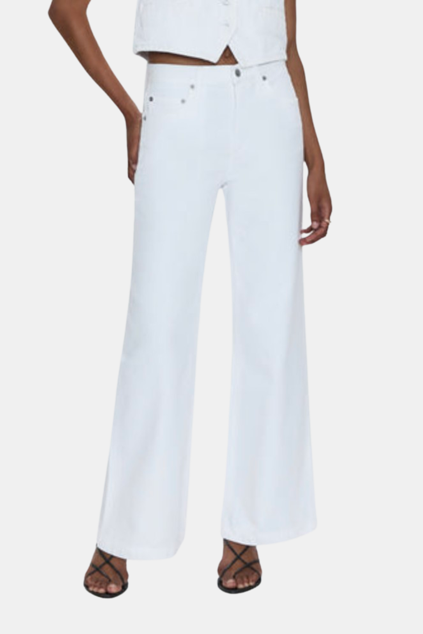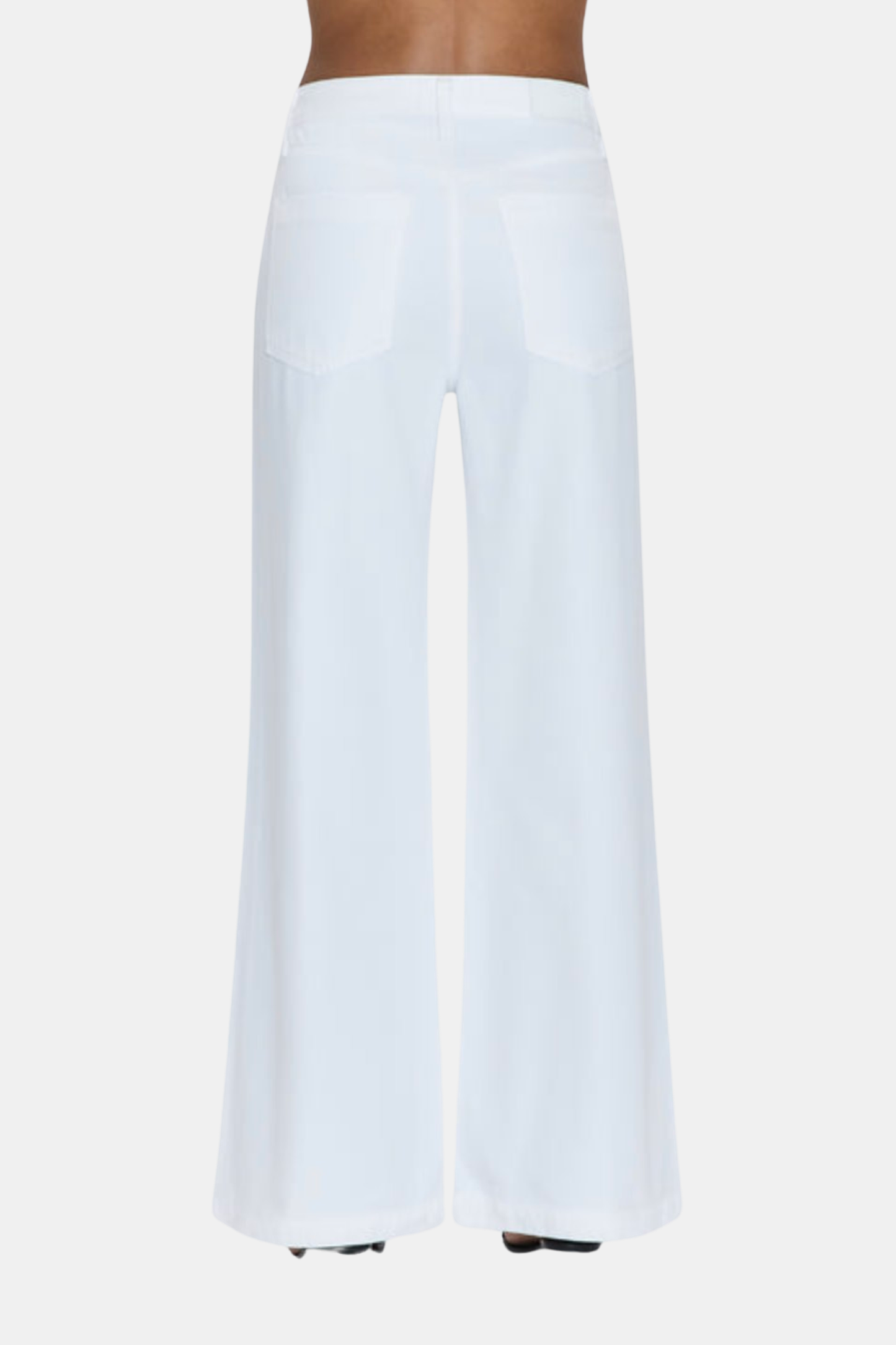The it-girl fit. Jadyn is designed to sit low on the hips, with a relaxed palazzo leg silhouette. Crafted from a lightweight rigid denim without stretch that holds it shape. Shown in Vivid White.