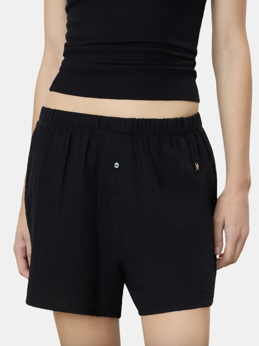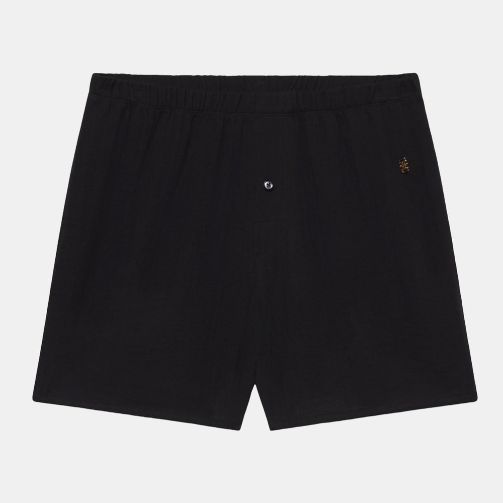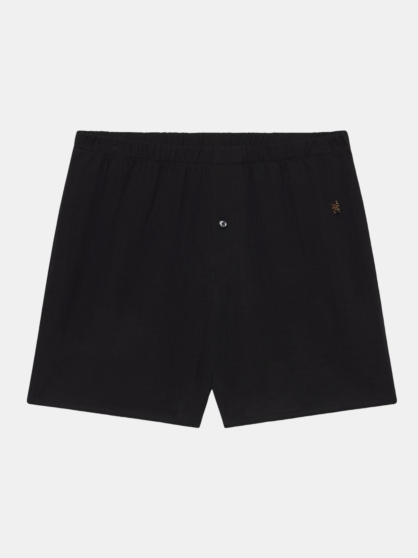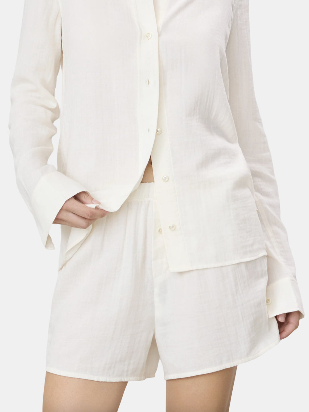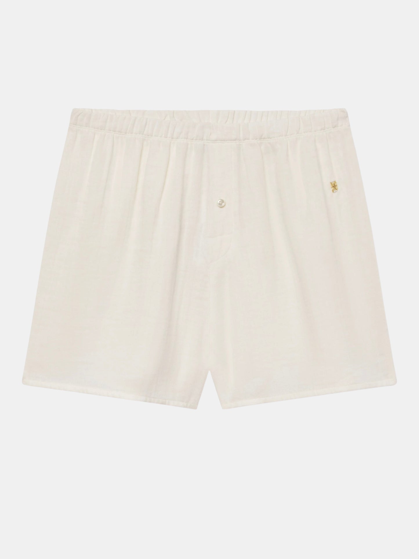 Go for a laid-back look with ÉTERNE's Jude Short. It is crafted from lightweight, breathable cotton gauze, offering a relaxed fit and a classic feel, and designed to be your summer staple. Shown in Ivory, Black, Dusty Blue, and Taupe.