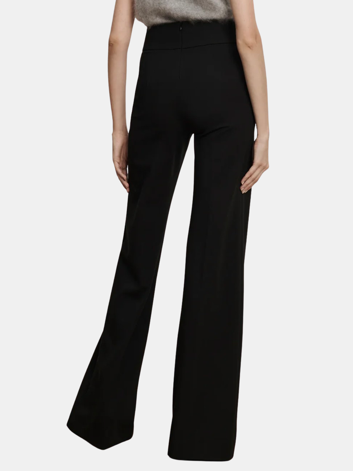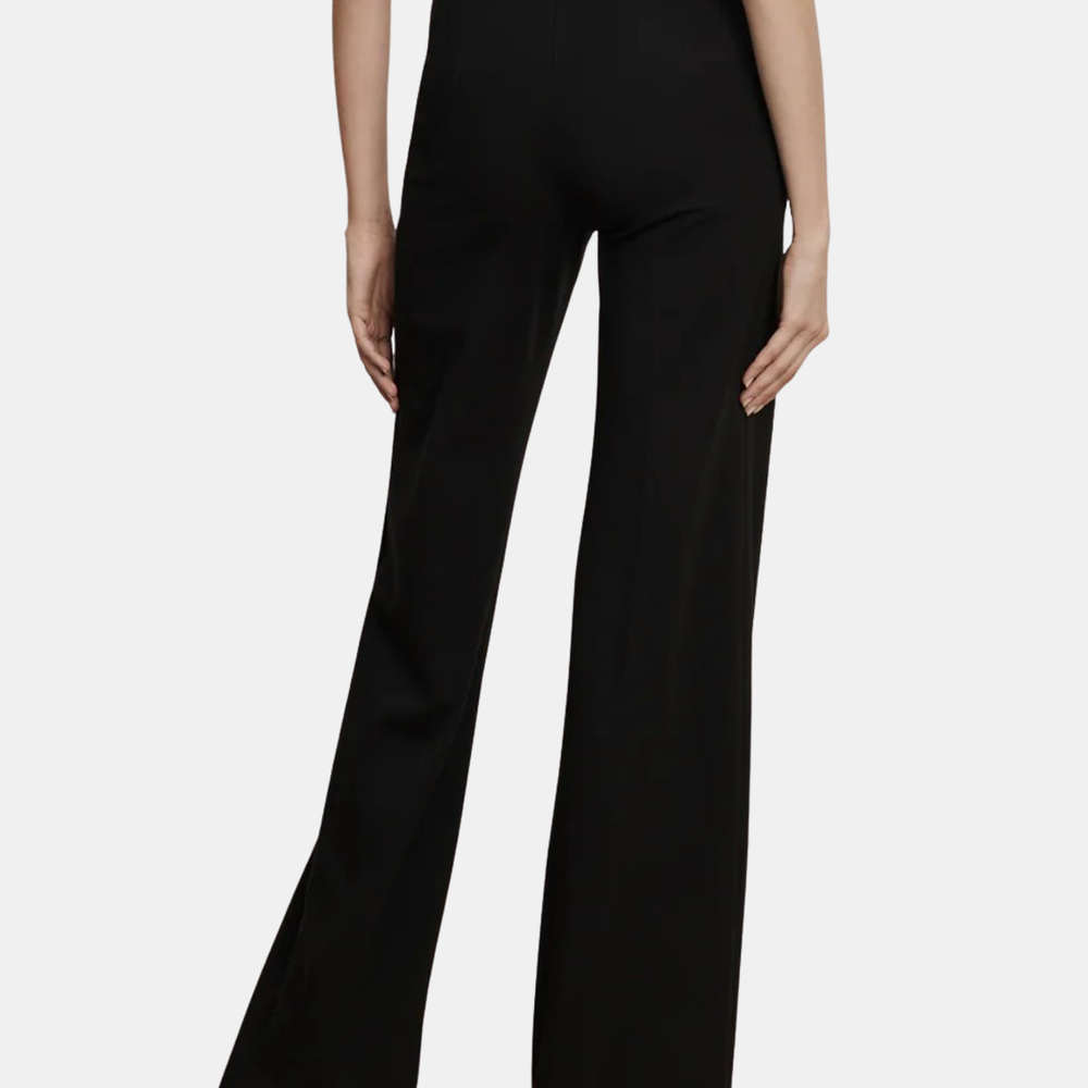 The ponte pant, perfected. Crafted from a smooth, stretch-viscose knit in black, the Kalinda features a super-wide-leg silhouette with a high, three-inch-wide waistband for a sleek, flattering fit. A pressed front crease adds polish and structure, while the invisible back zipper closure ensures a clean finish. Combining the ease of a pull-on pant with the refinement of tailoring, dress it up for work or down for the weekend. Pair with the Johanne Top. Shown in Black.