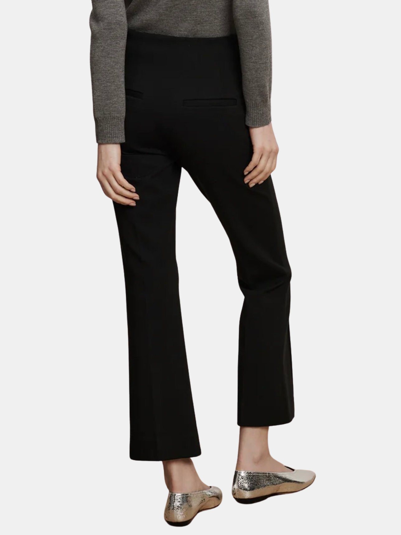 A best-selling silhouettes for a reason. Crafted from a premium stretch-blend in black, the Kean is a streamlined trouser with a slim leg and cropped, slightly flared hem. A high waist elongates the figure, finished with welt pockets for a tailored look. Pair this ankle-length pant with a cashmere sweater for a polished everyday look. Shown in Black.