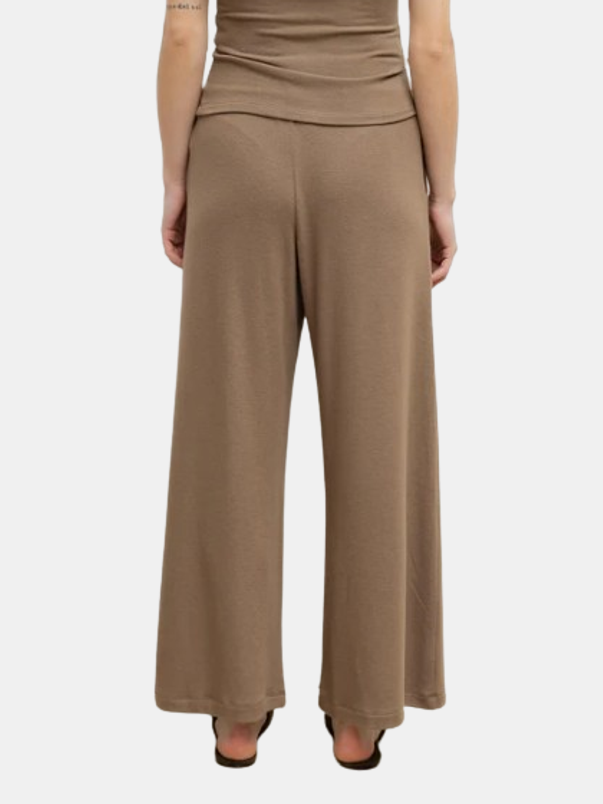 Cut in our buttery soft brushed sweater jersey, The Lauren Crop Pleated Pocket Pant is the little sister to our bestselling Lauren Pleated Pocket Pant. Now with a shorter inseam length, this pull-on style pant features a relaxed wide leg and subtle front pleats. Shown in Walnut.