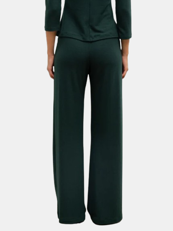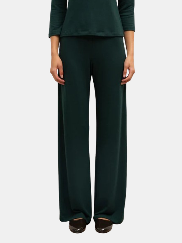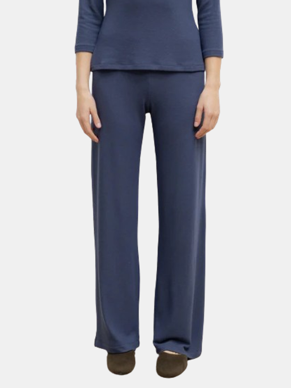 Made from LESET's buttery soft brushed Lauren Sweater Jersey, The Lauren Wide Leg Pant is an easy, pull-on style pant that features an elastic mid-rise waistband and a relaxed, perfected draped wide leg. Shown in Black, Emerald, and Marine.
