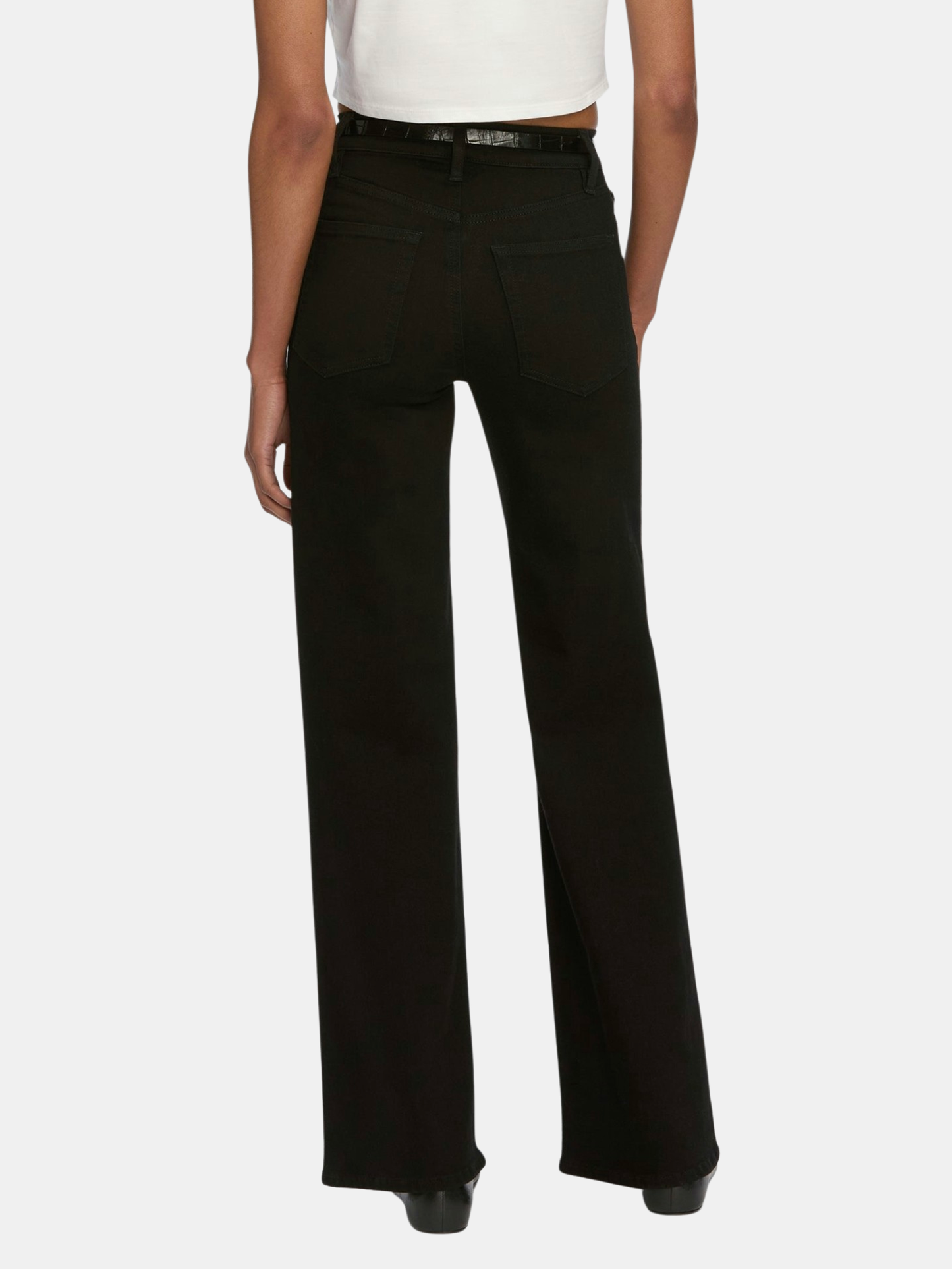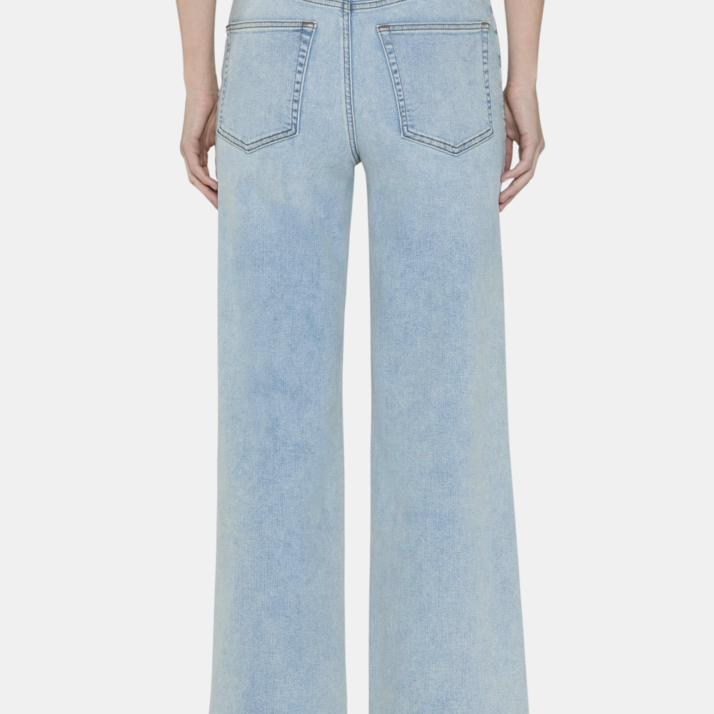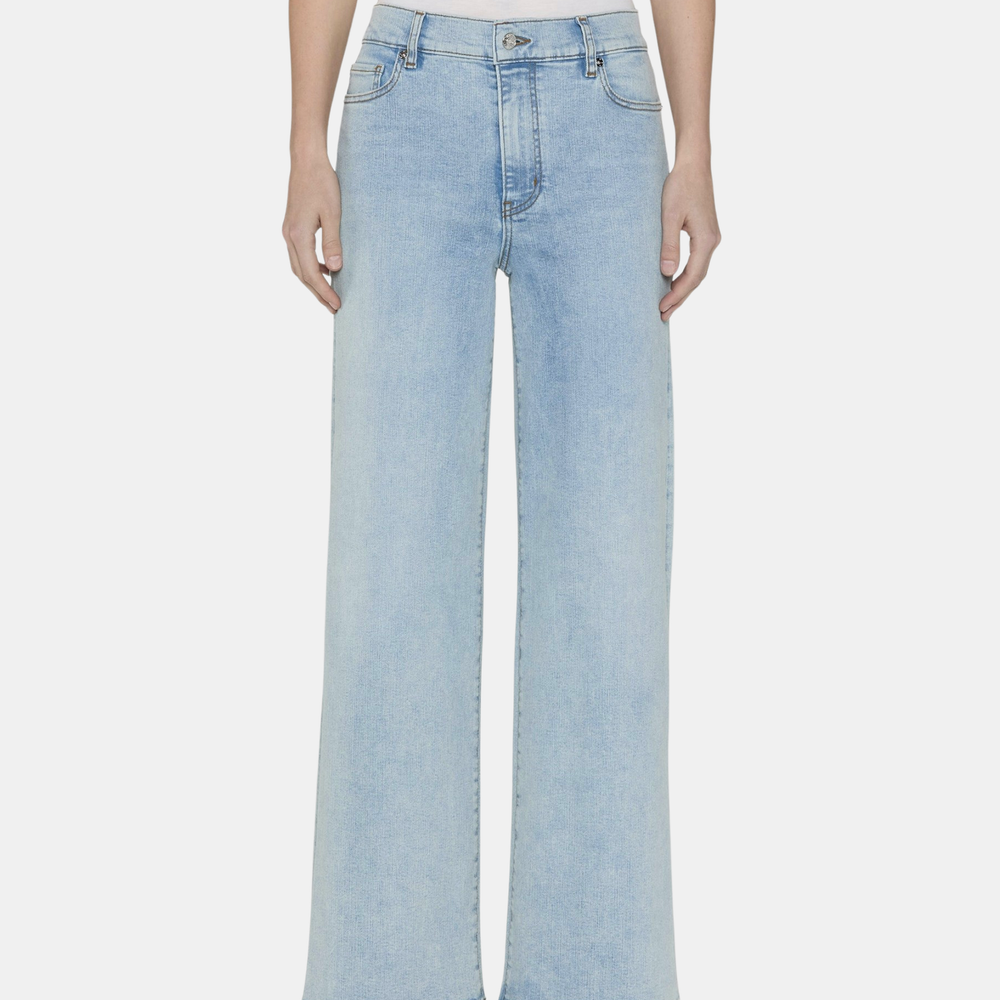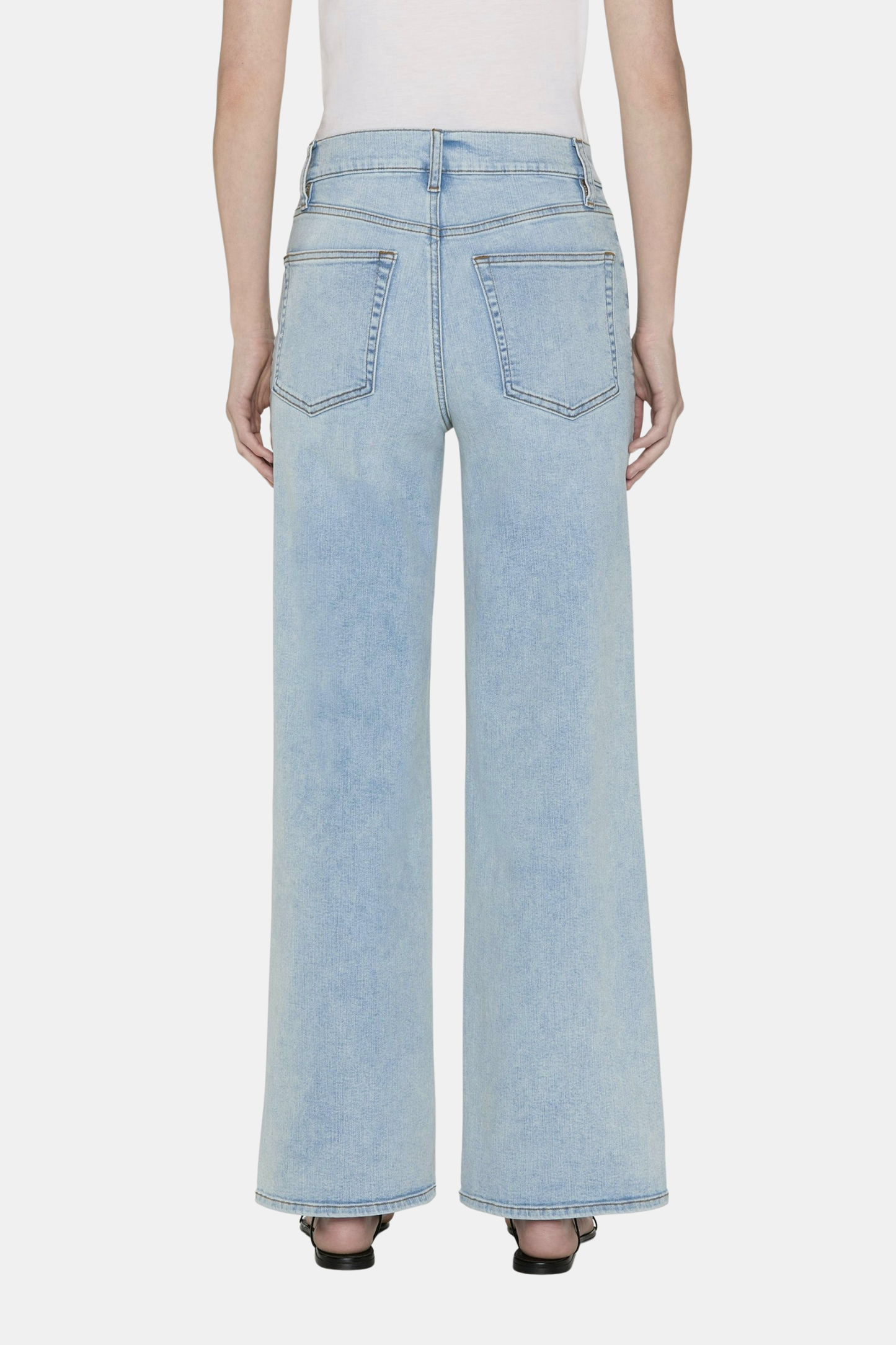 Step into a perfect fusion of timeless elegance and modern comfort with a high-rise, wide-leg silhouette. These palazzo jeans are designed with a flattering high rise, fitted hip, and subtle wide-leg flare that hits at the floor. Crafted from a sustainable, ultra-stretch cotton blend for soft and comfortable wear. Shown in Tribute, Black, and Flip Raw.