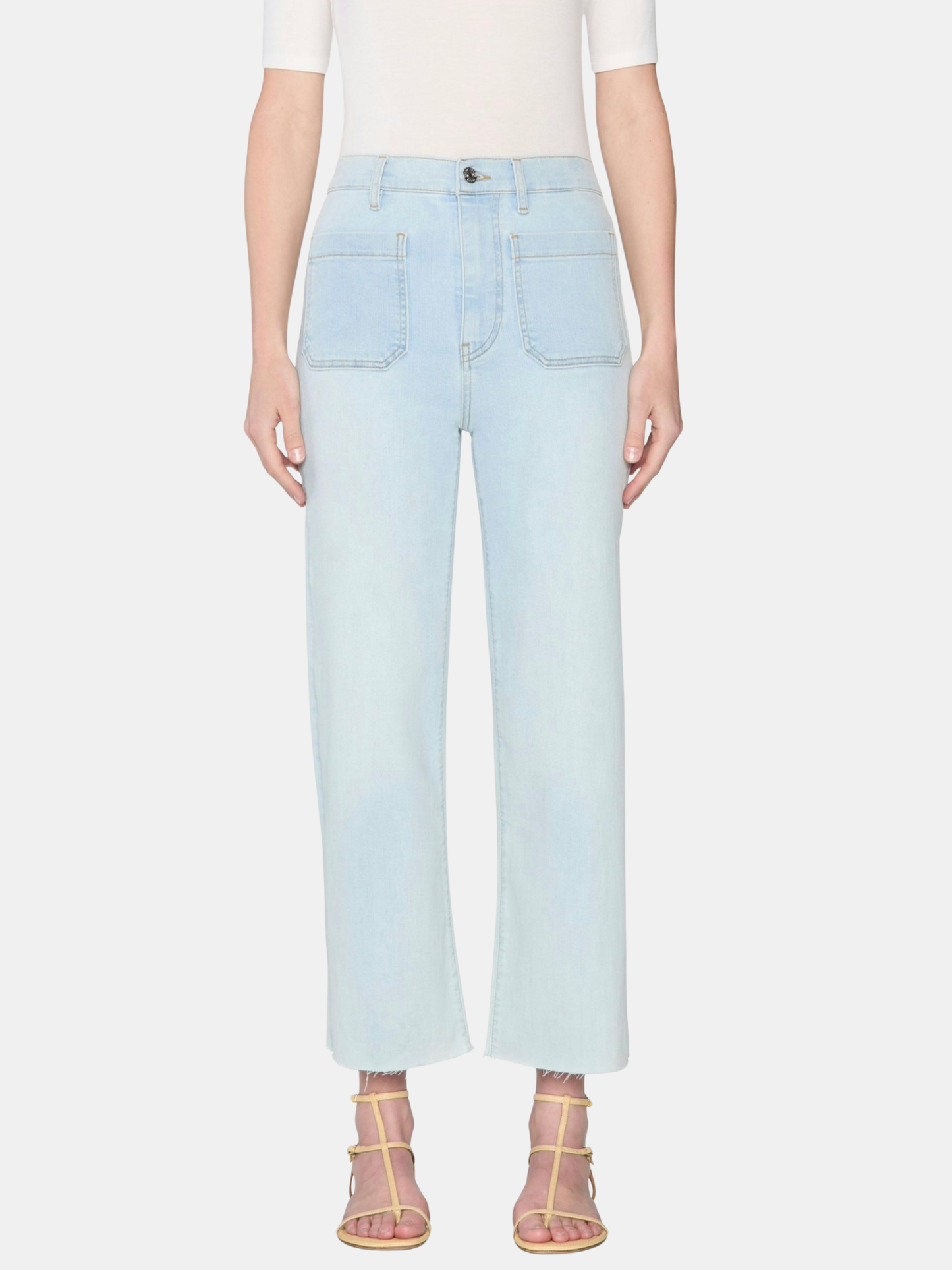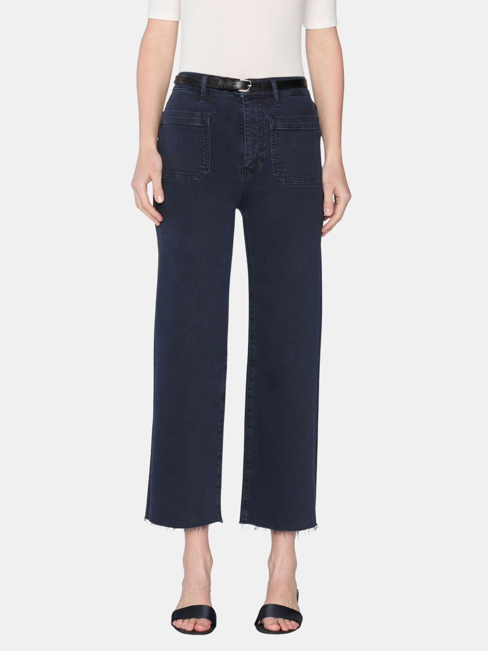 Tailored, with a twist. The Anchor Pant features front patch pockets, a cropped inseam, and a subtle wide leg. The deep navy wash and raw, frayed hem enhance this super stretch silhouette. Shown in Navy and Float.