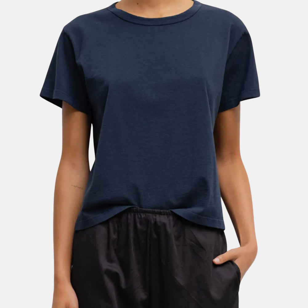 A timeless, crewneck short sleeve t-shirt that strikes the perfect balance between a tailored and relaxed silhouette. The Margo is the ultimate year-round, everyday basic. Shown in White, Military, Pink, Midnight, Affogato, Creme, Chocolate, Nuit, and Black.