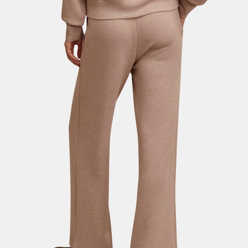 Experience unmatched comfort and style in The Wide Leg Pant from Varley in their famous DoubleSoft® fabric. Featuring a high-rise waist, wide-leg silhouette, elasticated waist with internal drawcord, and elegant pink tuck detailing, they're a versatile wardrobe essential. Perfect for running errands or lounging around the house, pair with the Oakdale Sweat. Shown in Taupe Marl.