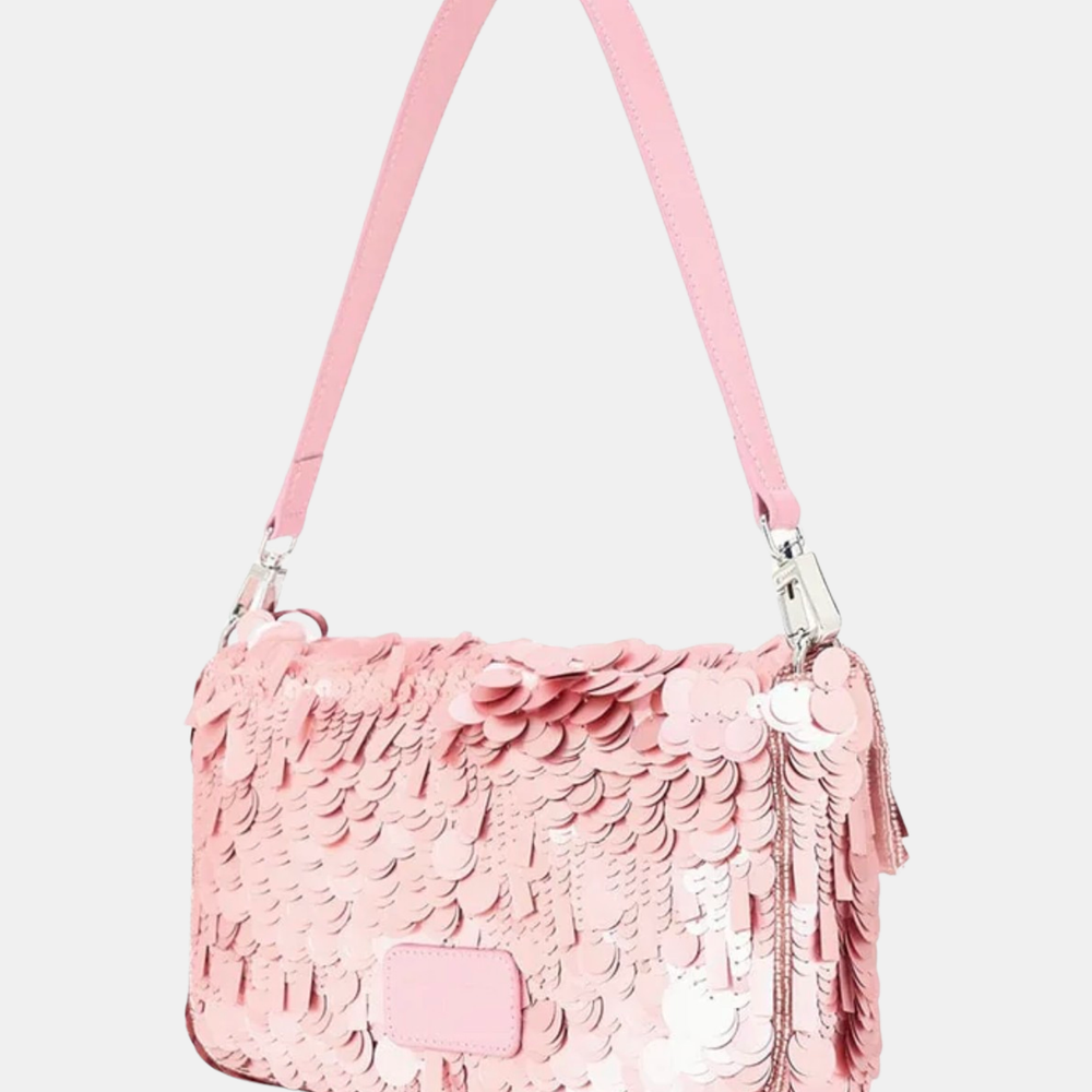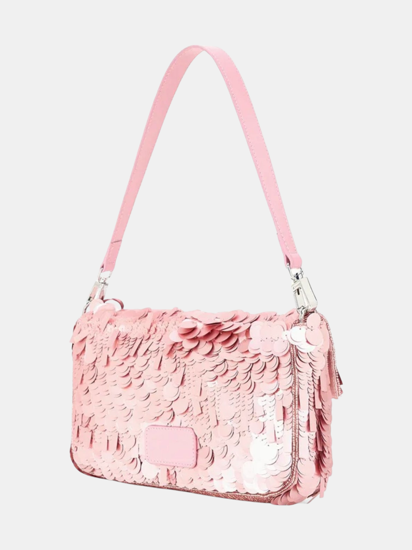 Inspired by our best-selling Tommy Beaded Bag, The Timmy is a sequin shoulder bag with a detachable strap that allows you to take this bag anywhere with ease. The Timmy features an interior zip pocket and custom logo leather patch in the back. Shown in Cherry Blossom.